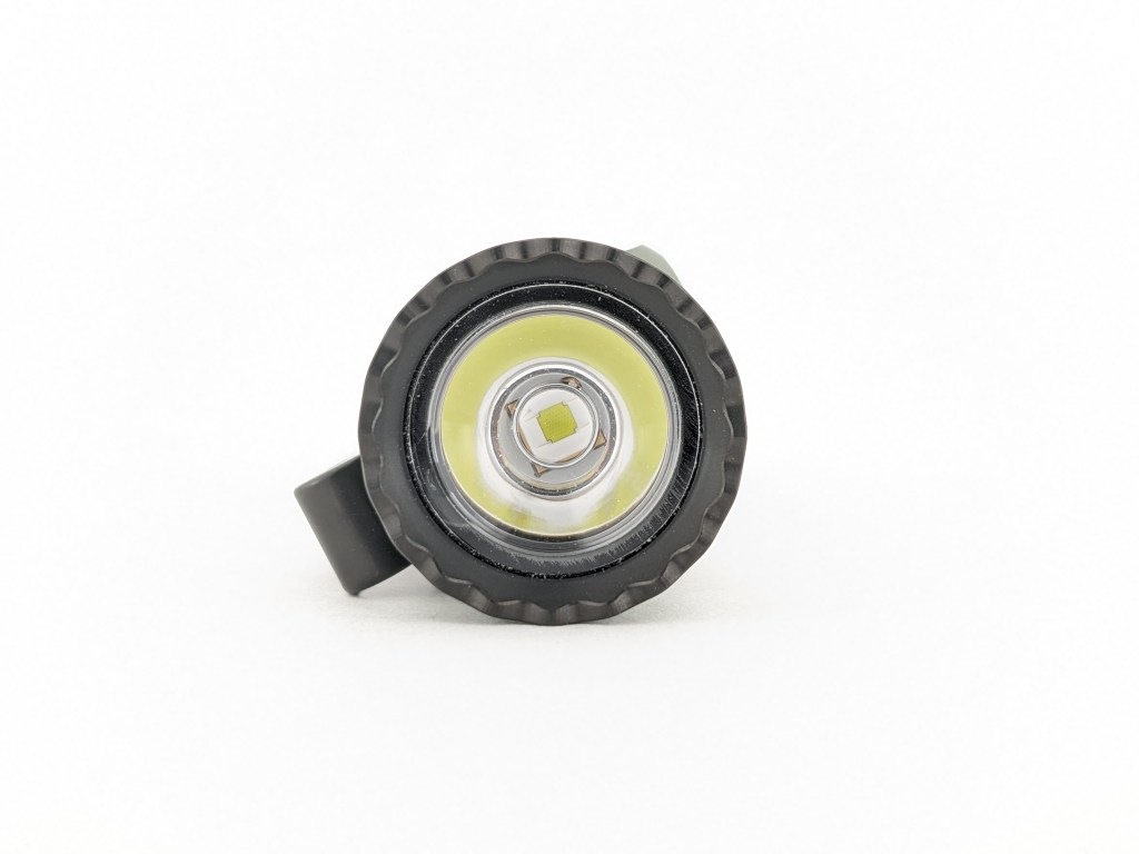 Warrior Mini 3 includes a Luminus SFT40 LED. I think that’s a great choice for this model. It’s bright, focused, and relatively simple to drive. It’s only available in cool white with standard CRI at the time of writing. It would be nice to also have a neutral-warm, high CRI LED option from the factory though. The LED sits behind a plastic TIR optic with no glass lens. That means it can get scratched or damaged more easily. I was unable to unscrew the bezel.
