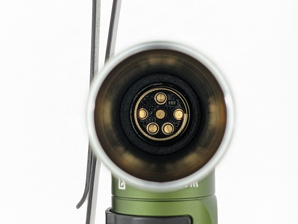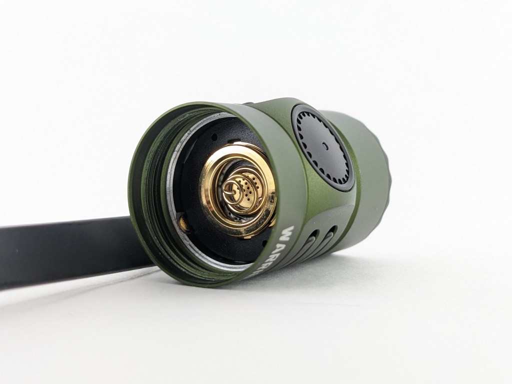 The build quality is excellent, as I’ve come to expect from Olight. The machining and anodizing are top-notch. It’s got a feeling of quality that you just don’t get from budget brands like Sofirn or Convoy. Below is what the inside of the tail looks like if you’re curious.