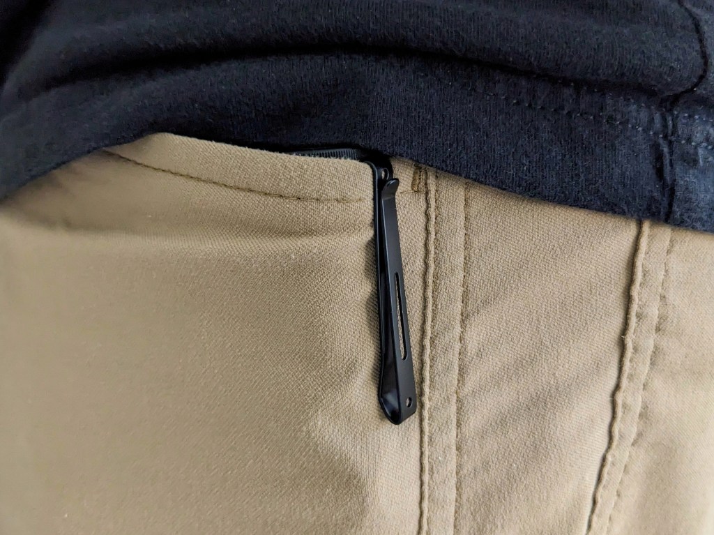 Pocket clip: The pocket clip is a new design and it works well. It can attach near the head or near the tail but I find near the tail to be much more useful. That allows the light to carry deep in the pocket and you can use the loop-back part of the clip to attach the light to your shirt pocket while facing the beam outward. It will scratch the finish on the light if you move it regularly though.