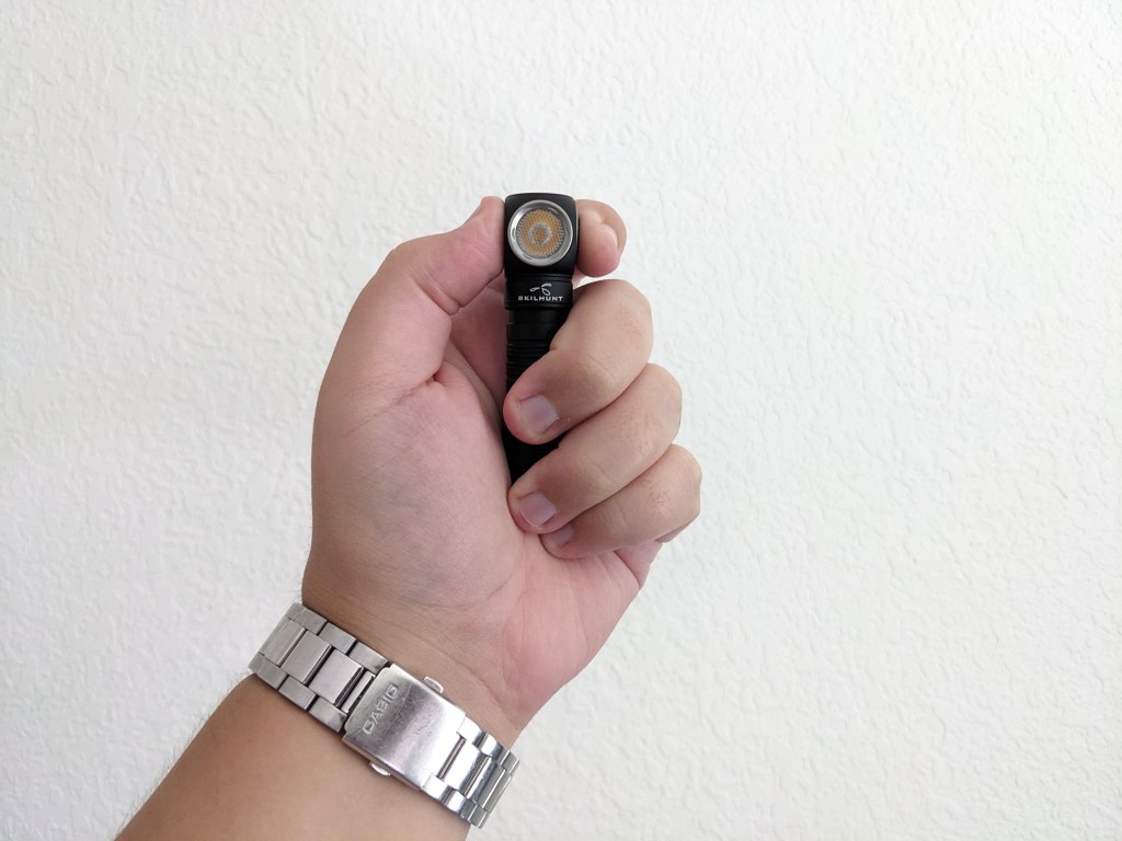 H150 is very small so it’s not particularly ergonomic to use. It’s so lightweight that it doesn’t really matter though. The switch is on the side which is better for headlamp use than handheld use. It’s ergonomic enough for short EDC handheld use but if I planned to be out and holding a light for a long time I’d want something more hand-filling and ergonomic.