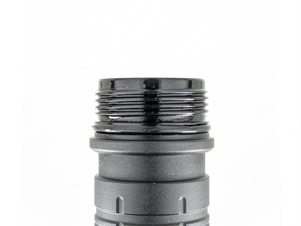 The build quality feels nice and is satisfactory overall. The anodizing is matte and just a bit chalky. The threads are smooth enough, trapezoid-cut, anodized, and lubricated. Unfortunately, I wasn’t able to unscrew the head, even with grippy gloves, so it may be glued on.