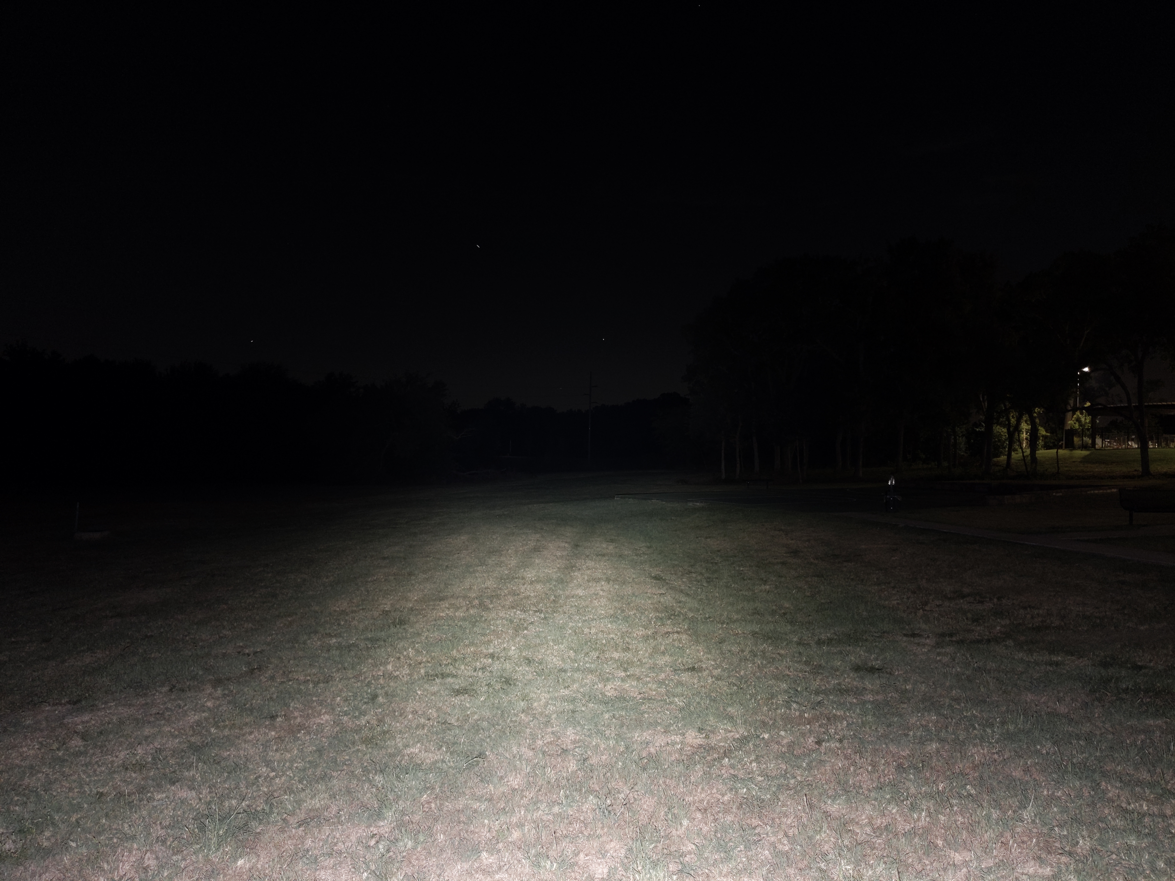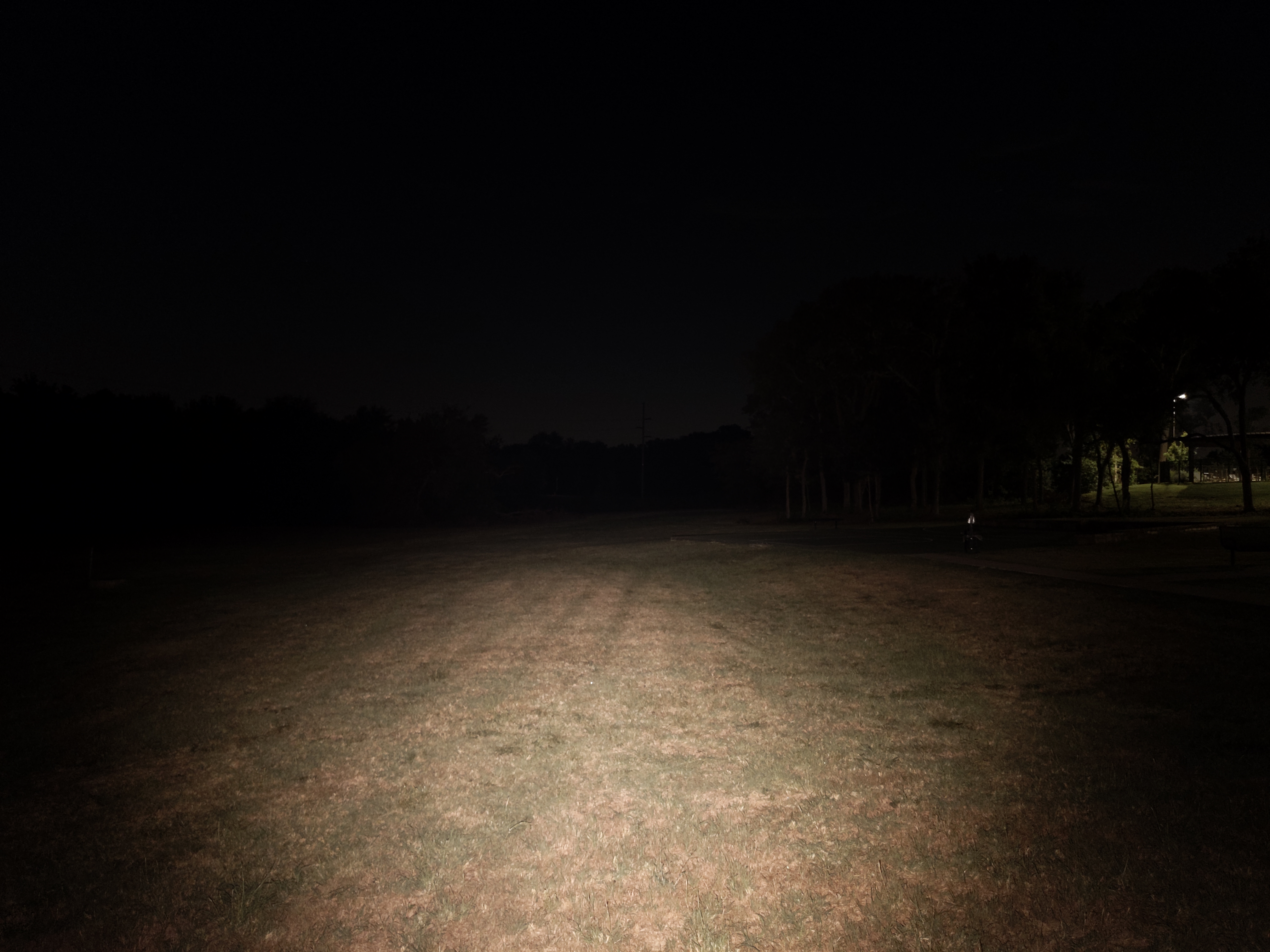 This is a great general-purpose beam. Not too floody and not too throwy. There’s a defined center hotspot and bright, wide spill. The corona has a bit of tint-shift but it’s not bad. There are some flower petals way out on the edges of the spill but you don’t notice them in normal use.