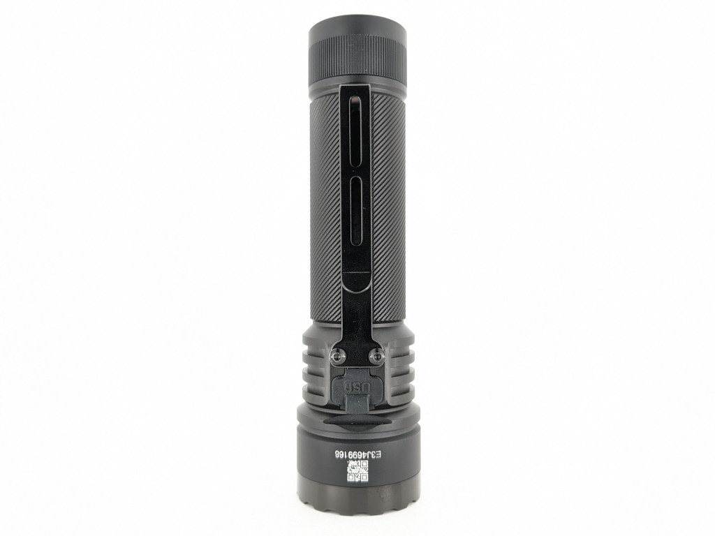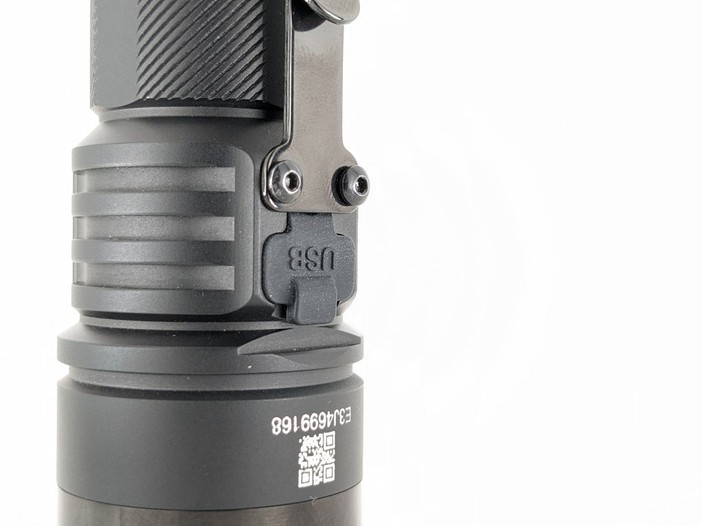 The clip is held on by two screws that are easy to remove with a 1.5mm hex bit. Underneath you’ll find a third screw holding on the rubber USB port cover. Clever design! I’m glad Acebeam chose not to permanently lock the screws down like Olight has been doing recently. It’s important for users to be able to remove the clip to replace it or bend it back into shape if it gets snagged.