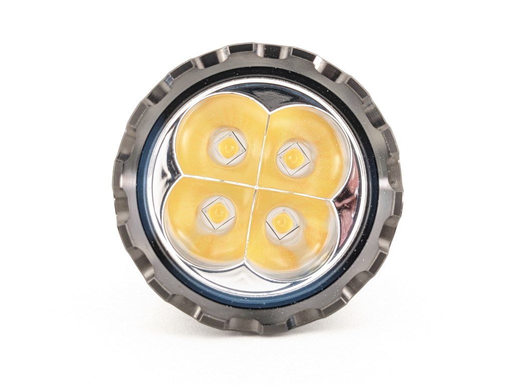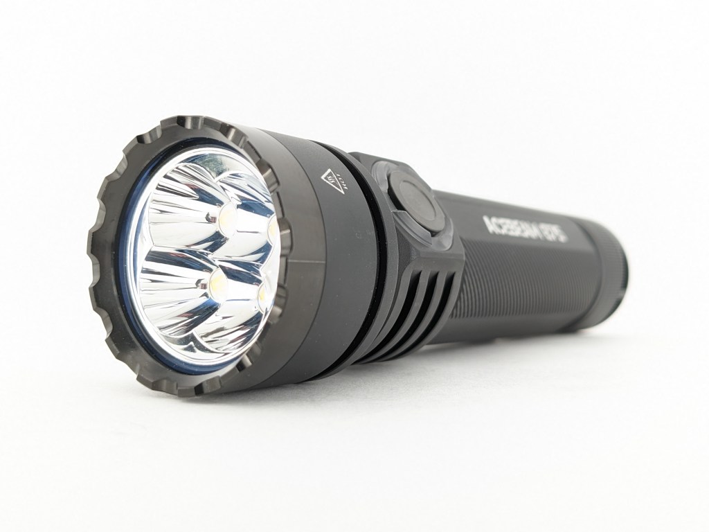 Acebeam is known for its high-quality Buck or Boost drivers. I’m not sure which this light uses, but I’m guessing it’s a boost driver with the LEDs connected in series. It’s very efficient and is decently well regulated too. Unfortunately, I was unable to remove the bezel to access the driver, even with super grippy gloves.