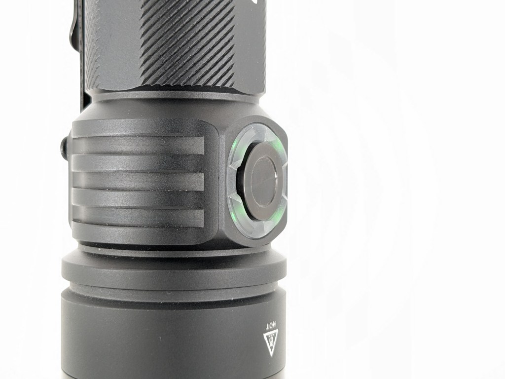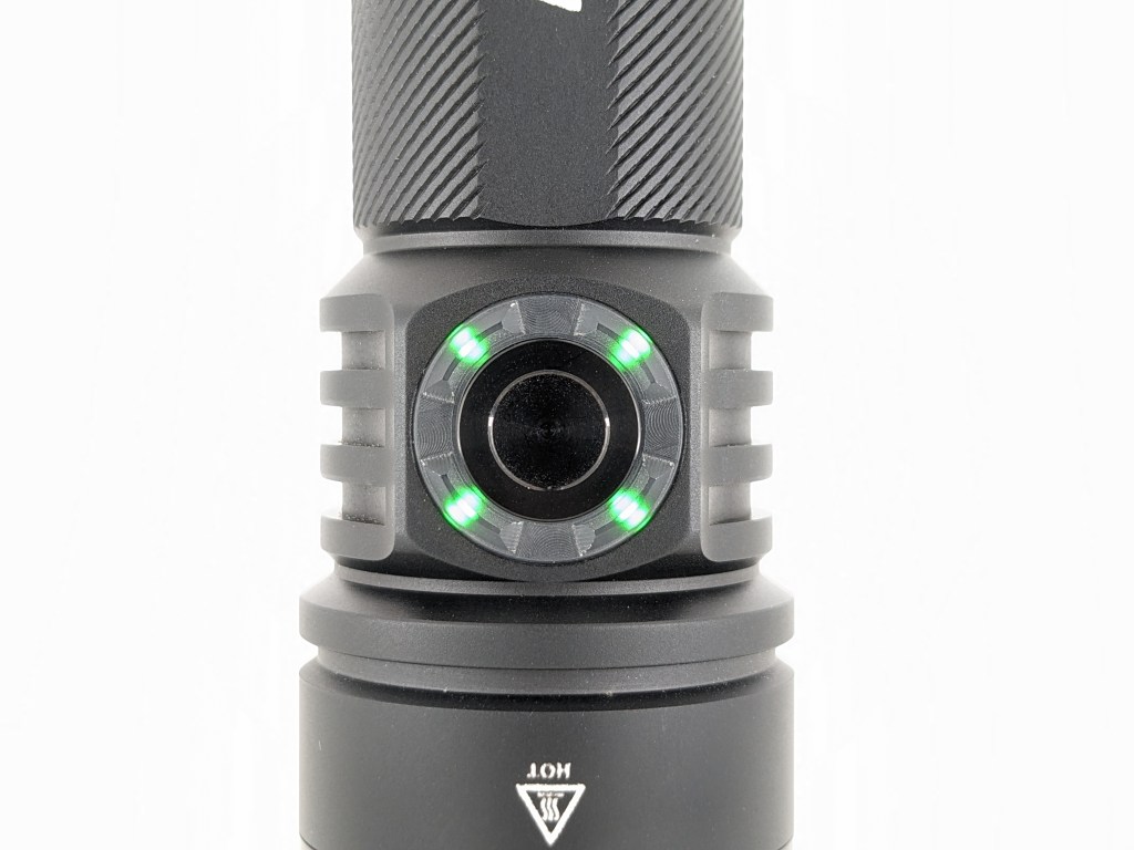 These indicators look a little cheap. One LED is sufficient when you’re using color to show battery charge level and having four linked together seems unnecessary. They aren’t discrete for showing battery percentage like some Olight models, where each LED represents 25% capacity. Overall not bad, just not quite as refined as I hoped. I’d love for the next version to include discrete LEDs that show percentages in 25% increments instead of using color to display the charge level.