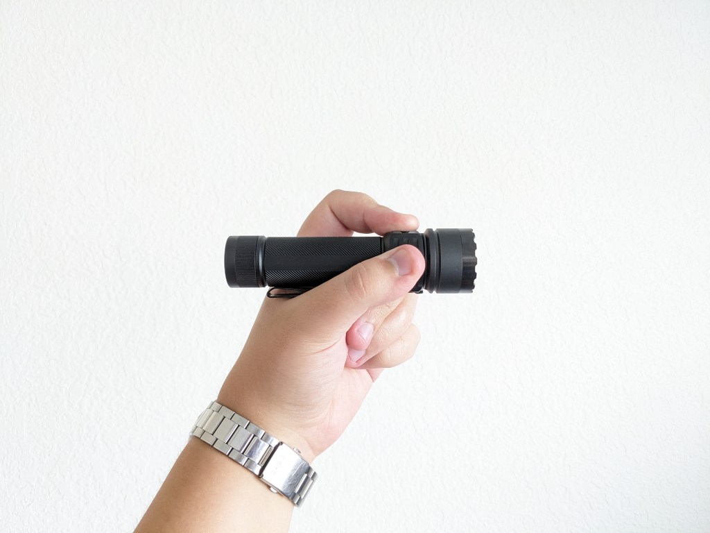 • Clicking turns the light on/off and holding the button changes modes. That’s the way almost all e-switch flashlights should work. It’s intuitive and quick.