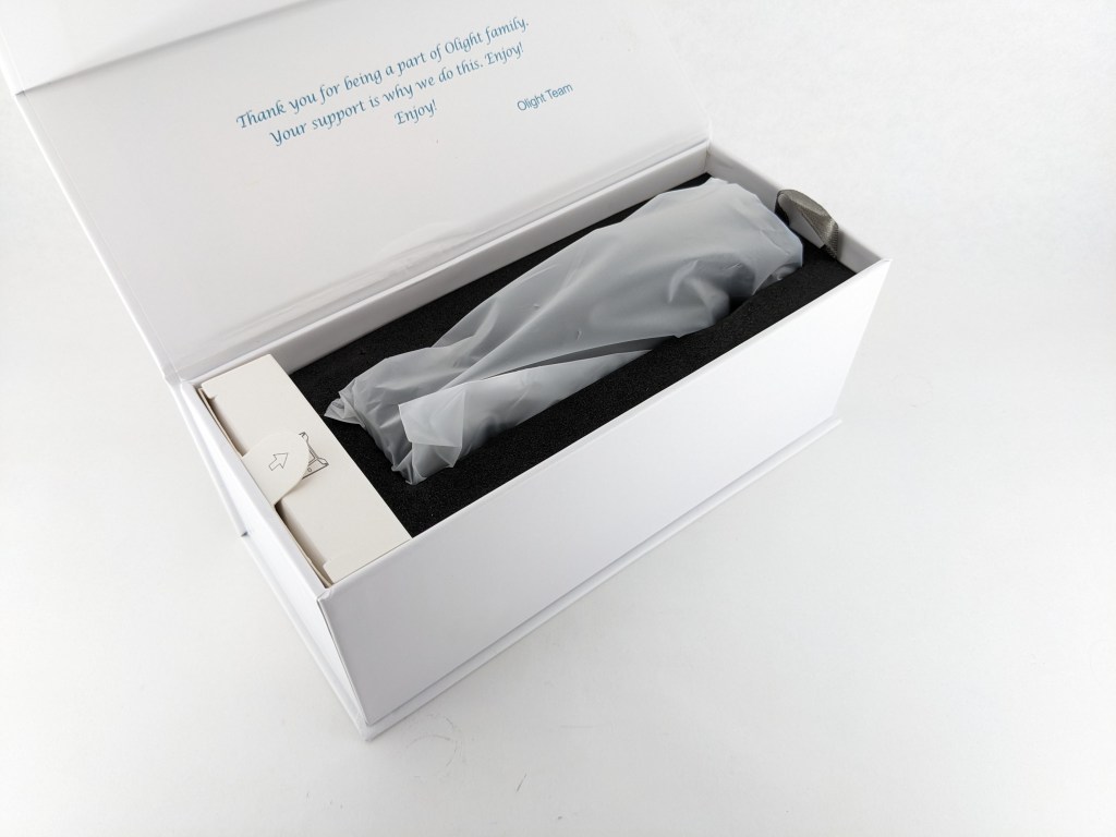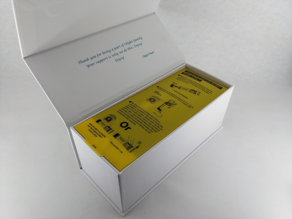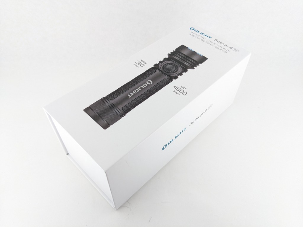 Seeker 4 Pro comes in one of Olight’s premium boxes with high-quality printing all around and a magnetic closure. It’s a whole unboxing experience and is sure to impress if you gift the light to someone.