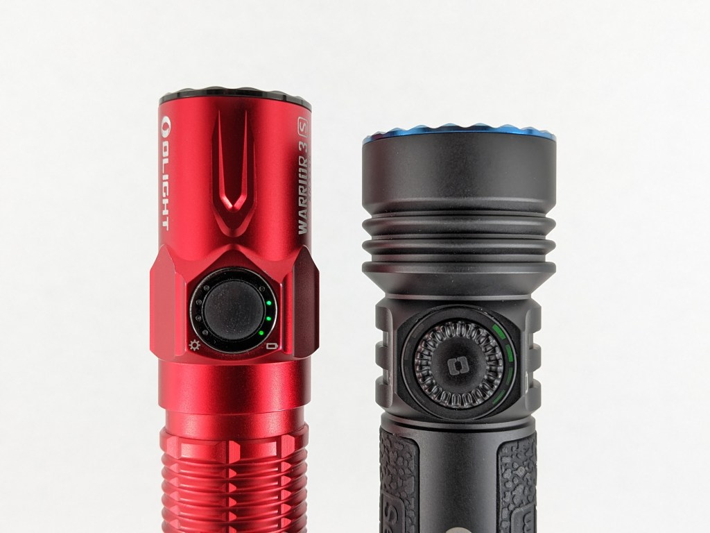 Olight Warrior 3S: Olight’s other big, bright 21700 light. More EDC friendly, dual switches, no rotary knob, no auto lockout, throwier beam, pocket clip included