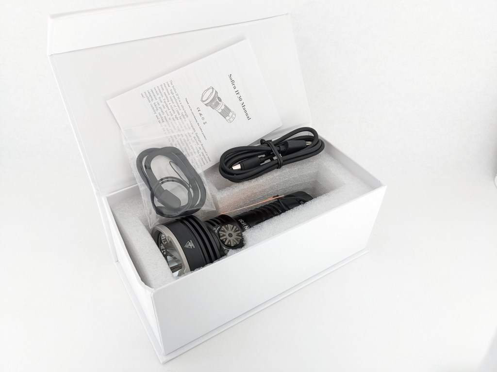 Sofirn has been stepping up their packaging recently. IF30 comes in a high-quality white cardboard box with a magnetic closure, printed outer sleeve, and foam insert inside. It’s a big step up from their typical brown cardboard box packaging and is sure to leave an impression of quality. With that said, it doesn’t really fit Sofirn’s budget-oriented reputation. I can’t help but wonder if the light would be a couple dollars cheaper with some simpler packaging.