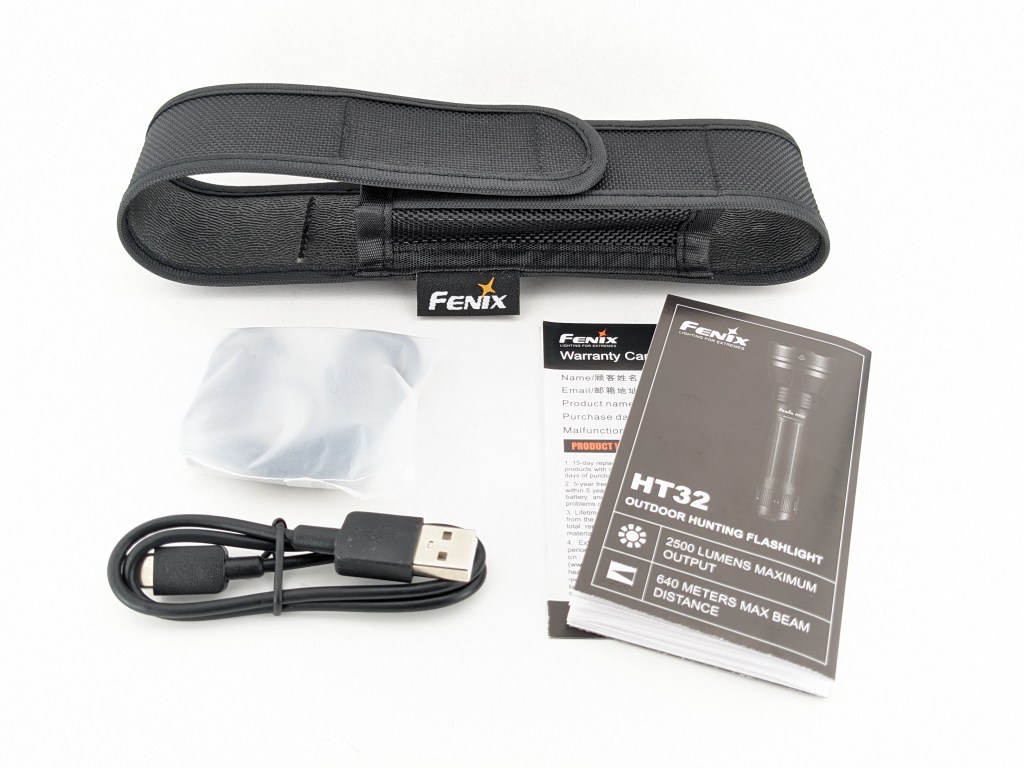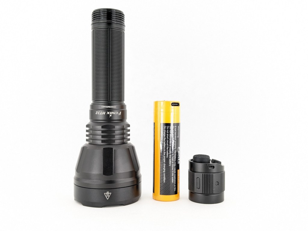 HT32 includes one USB-C rechargeable, 5000mah, protected, 21700 cell. 18650s or unprotected 21700s are too short to make contact, but they’ll work if you have some kind of spacer. Some Fenix models also support two CR123A’s, but I can’t find any mention of that in the product documentation so I believe HT32 is limited to lithium-ion cells only.