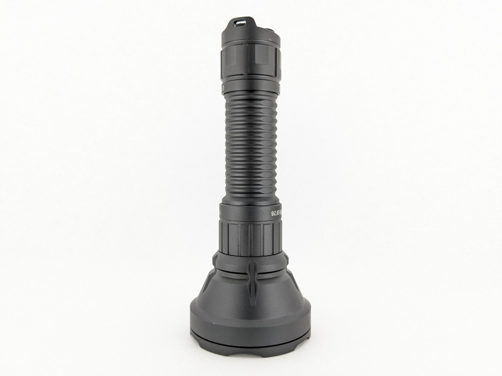 Disclaimer: All of my measurements are taken at turn-on. Lumen measurements were taken on a Texas Ace 3.5″ Lumen Tube. A candela measurement was taken at 10 meters with an Opple Light Master III on the highest brightness, and other candela figures were calculated relative to that. CRI, CCT, & DUV data was taken for each mode from a few feet away at the center of the hotspot with the Opple Light Master and Waveform DUV Calculator. Runtime tests were performed with the Ceilingbounce app on my smartphone. All of these tests were performed with a fully charged included battery unless otherwise specified. I cannot measure moonlight directly, so moonlight readings are calculated based on the brightness relative to the next-lowest mode. None of this is professional equipment, so take all of these measurements with a grain of salt.