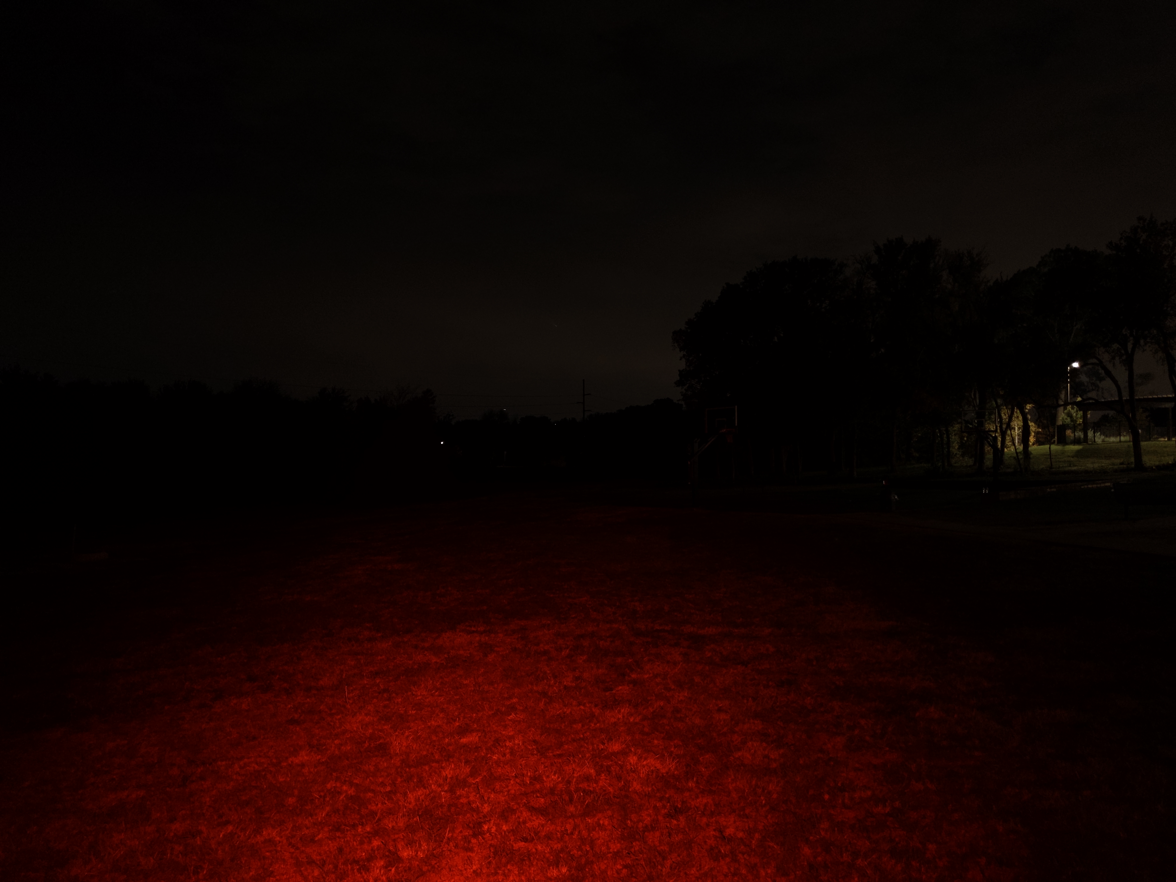 The beam is floody and diffused, no matter the color. There’s a vague hotspot, vague spill cutoff, and no artifacts. It doesn’t throw very far, but it’s the perfect beam for a headlamp. It doesn’t completely fill your vision with light, it just puts it where you need it so it doesn’t waste battery.