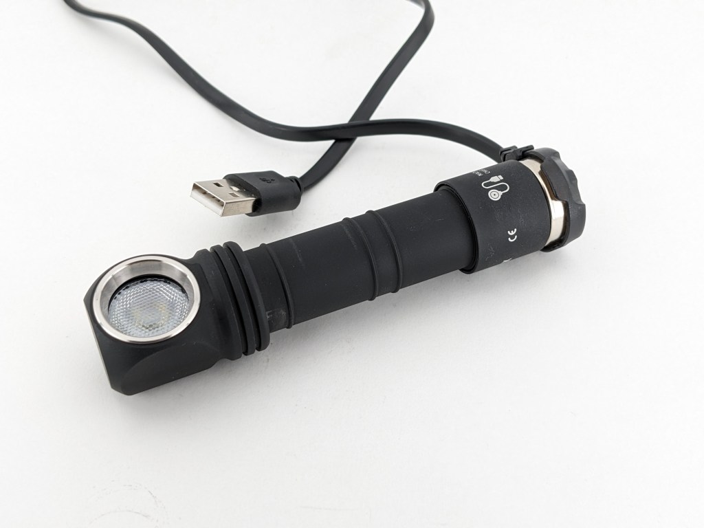 Charging is facilitated by an included magnetic USB charging cable. It’s similar to Olight’s well-known magnetic charging system but isn’t compatible. The biggest difference is that Armytek’s implementation does not require proprietary batteries! To charge, you have to loosen the tailcap a bit and then snap on the magnetic puck.