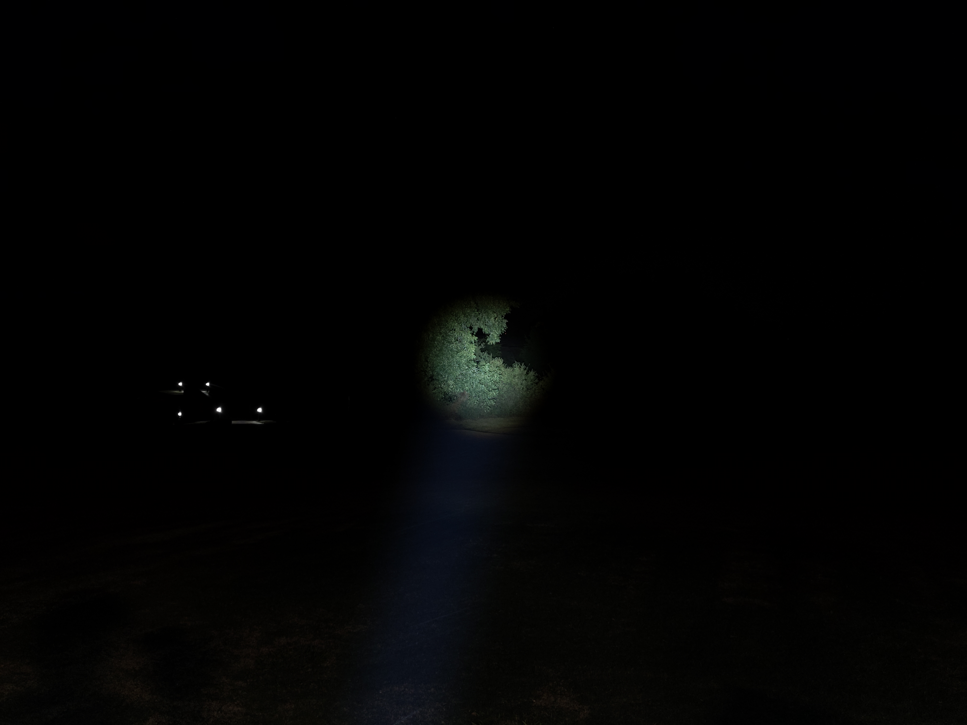 In the beamshots below, the garbage can is 21M away and the trees are 40-50M away.