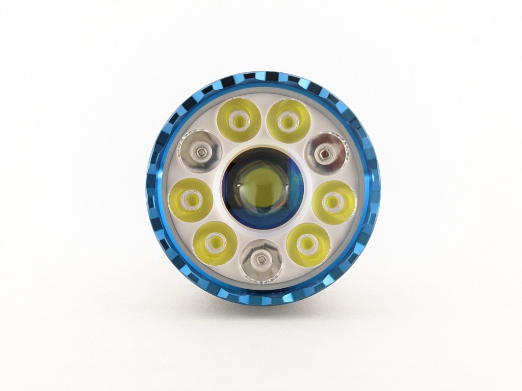 The Color LEDs aren’t specified either and I don’t know what they are. They’re staggered around the flood ring, but they each have their own complete TIR. That makes the color beams nice and symmetrical, while most other RGB lights have weird-shaped color beams.