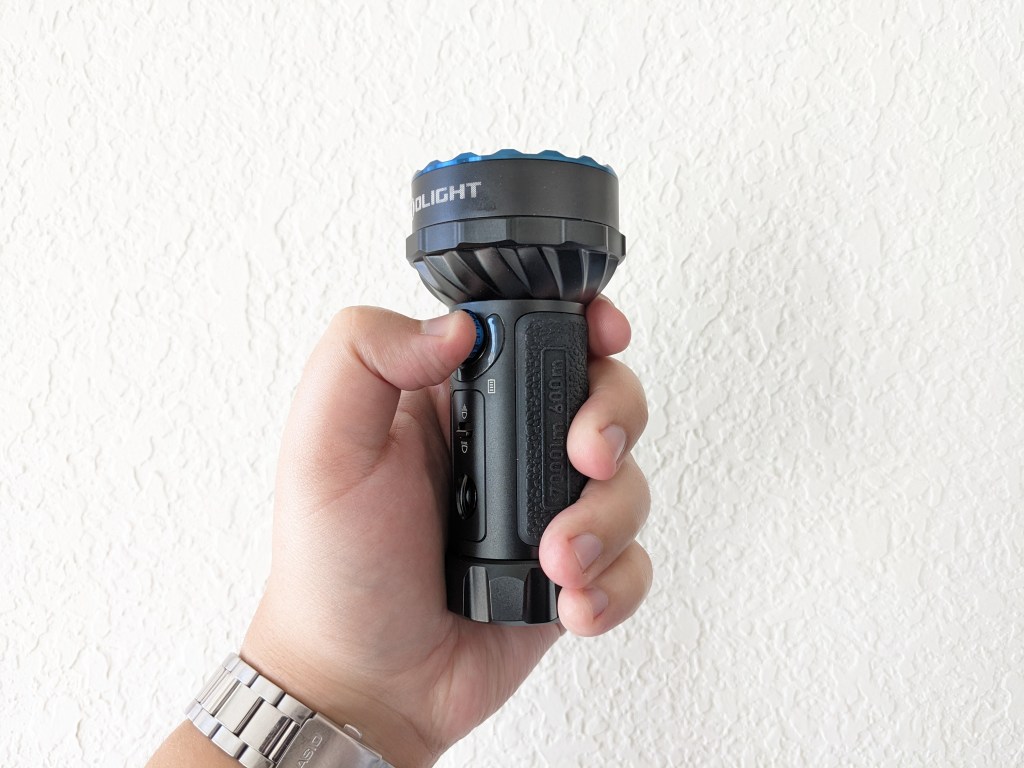 Thermal regulation: I chose not to test for active thermal regulation on this light. Olight rarely incorporates active thermal regulation and typically uses timed stepdowns instead. That means the light will perform consistently but may also overheat in hot weather or leave some performance on the table in cold weather.