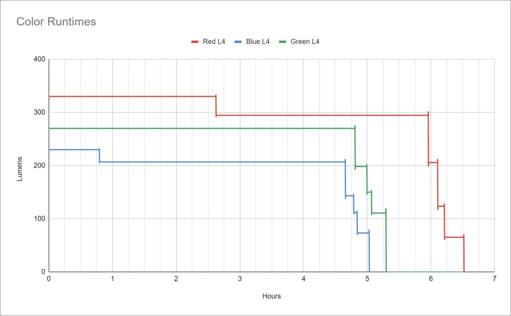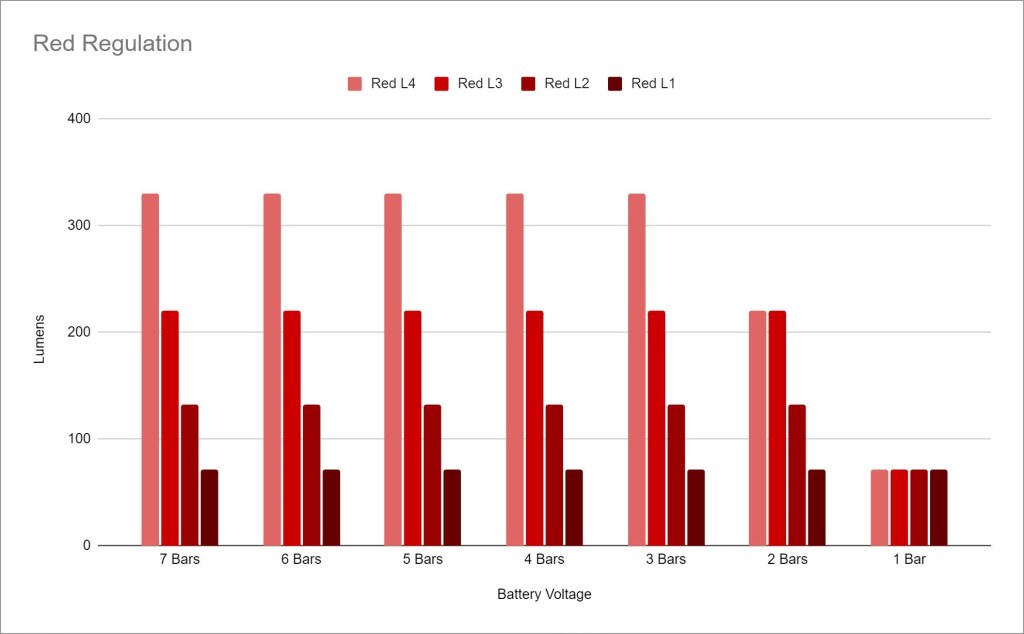 | Red Lumens (Tested) | 330 | 220 | 132 | 71 |