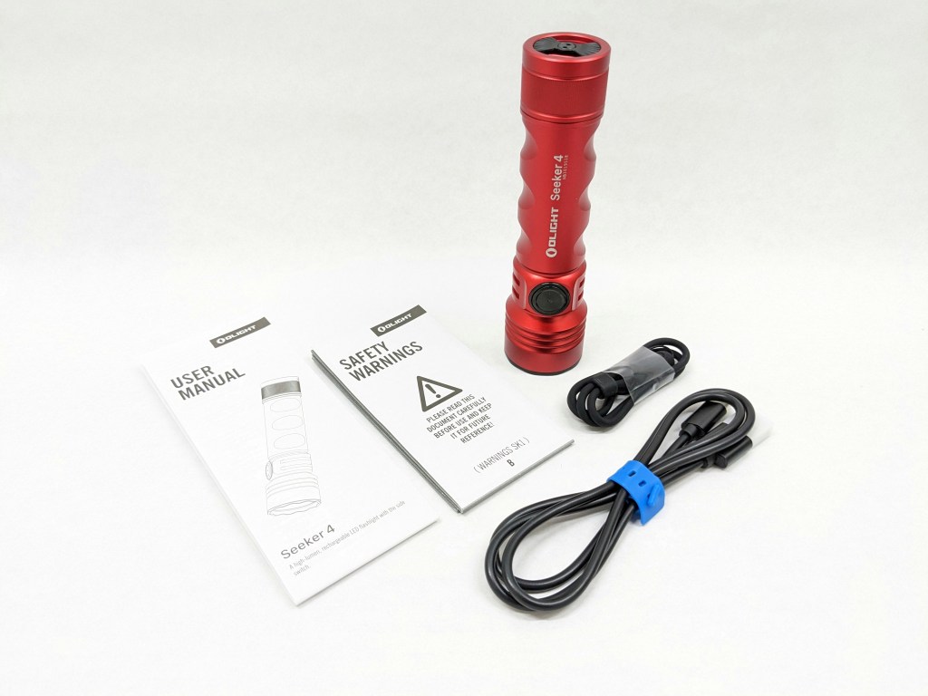 Seeker 4 comes in one of Olight’s premium boxes with high-quality printing and a magnetic closure. It’s an unboxing experience and will impress if you gift the light to someone.