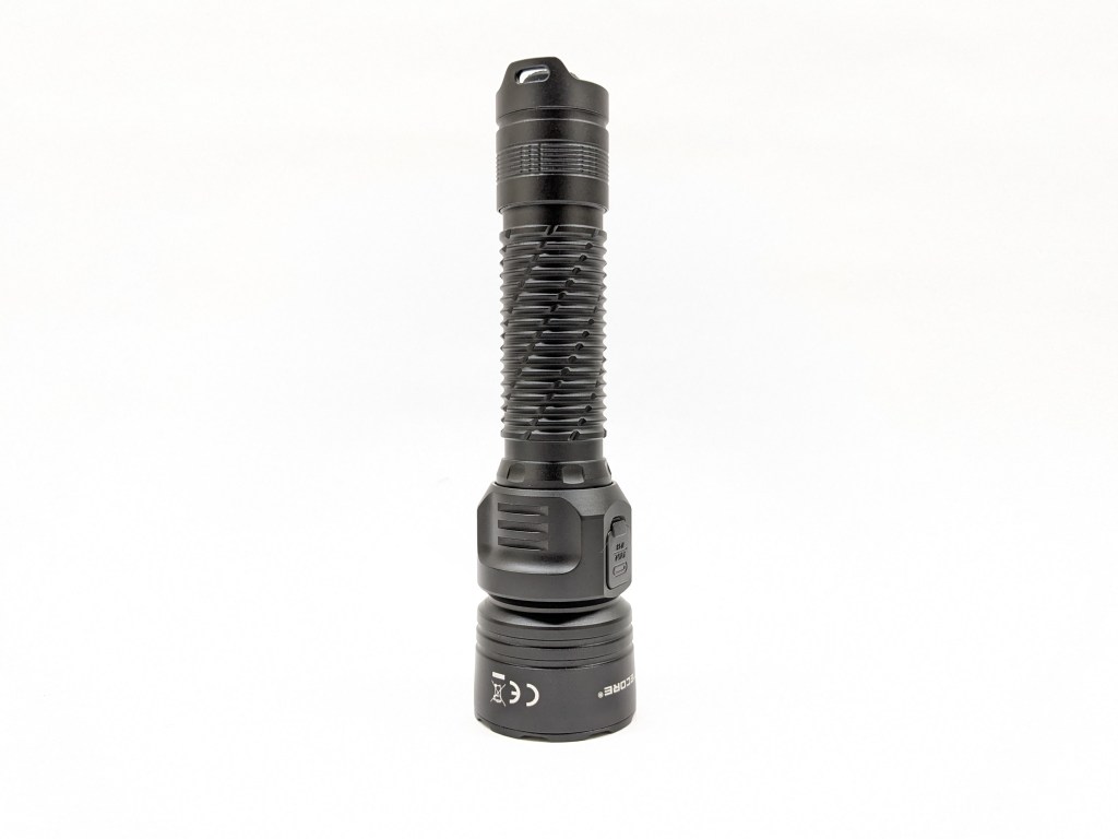 This is an excellent light. The specs may be a little inflated, but I never found the brightness or throw lacking. The beam is delightful. It’s got the crispest hotspot I’ve ever seen and it’s wider than most other throwers this size. The brightness/battery indicators around the side switch are convenient. The dual-switch UI is straightforward and intuitive. Charging is easy and the battery isn’t proprietary. Overall, this is a great choice for a mid-size thrower with plenty of throw and plenty of lumens.