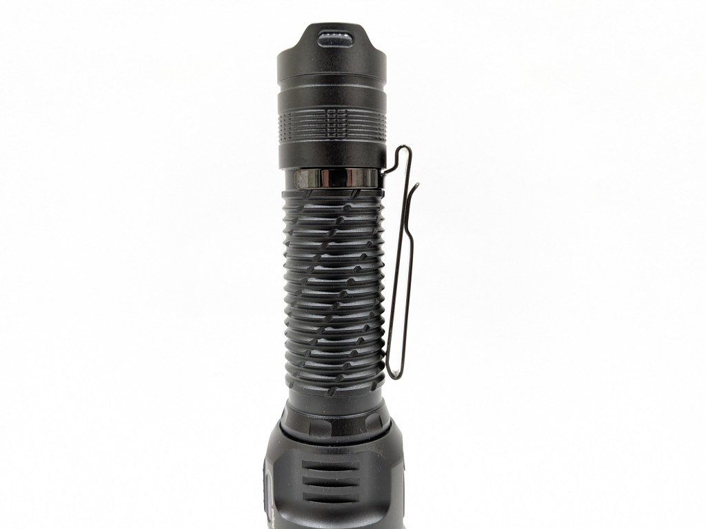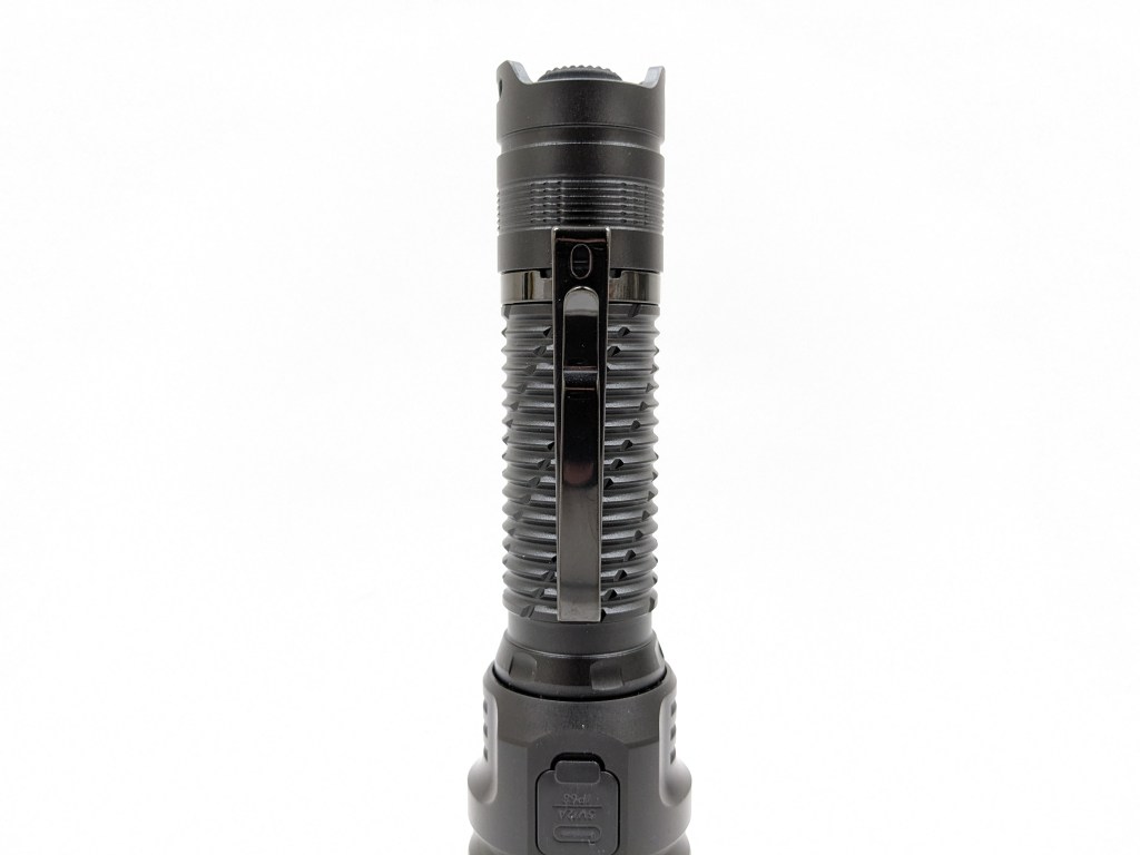 The clip feels like an afterthought. I guess that’s OK because this light is too big to pocket carry frequently, but I would have preferred a single-direction clip that carries a bit deeper and has a wider loop. I tried to fit a Thyrm Switchback, but the DF model is too large and loose and the 2.0 model is too small.