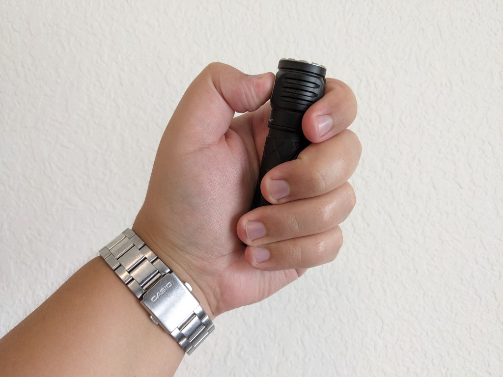 EC200 is quite small for an 18650 light so it carries very well. Ergonomics are good, and it’s comfortable to hold and use in a forward or pencil grip.