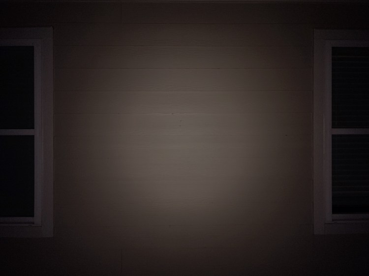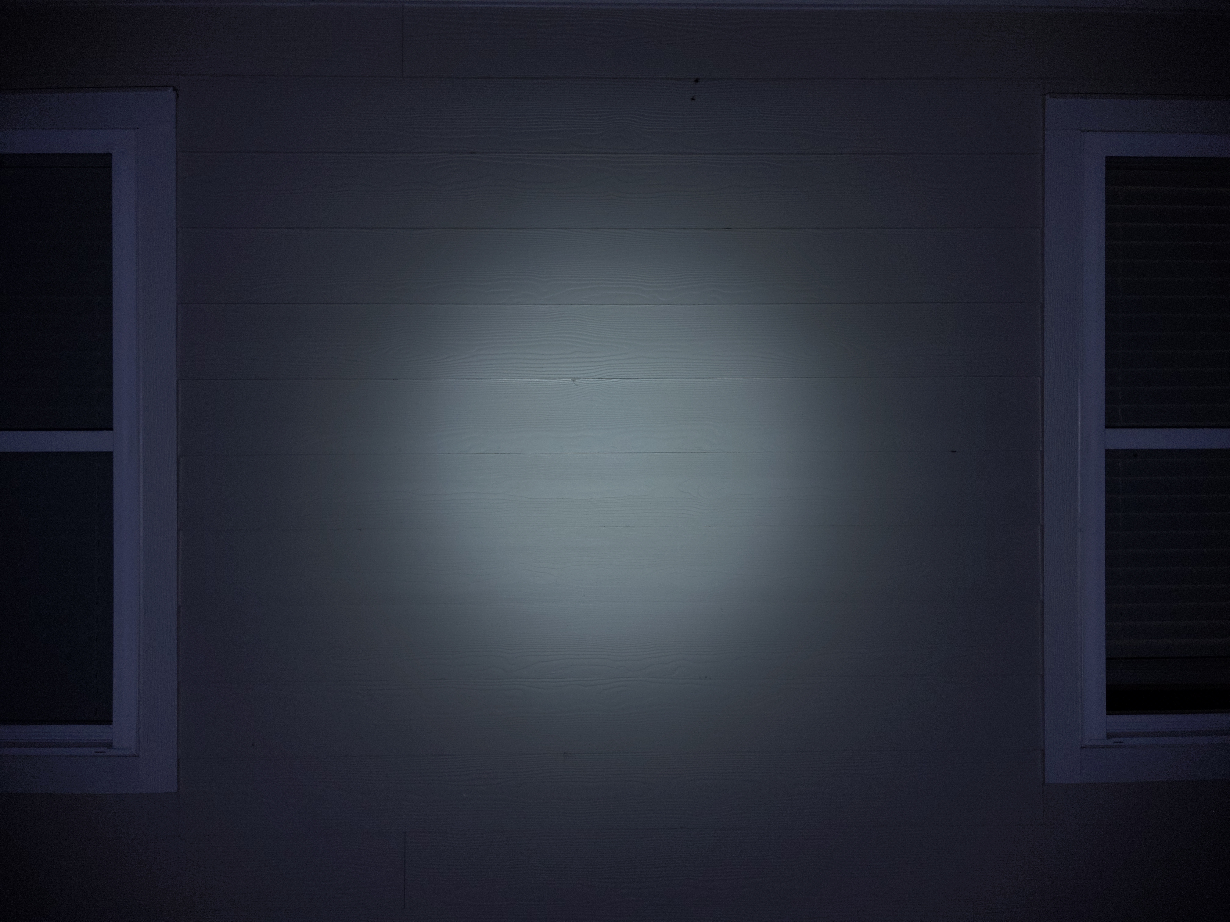 The beam is floody with a wide hotspot and spill that fades gradually away from the hotspot. It’s great for up close or flooding a room, but it doesn’t throw far.
