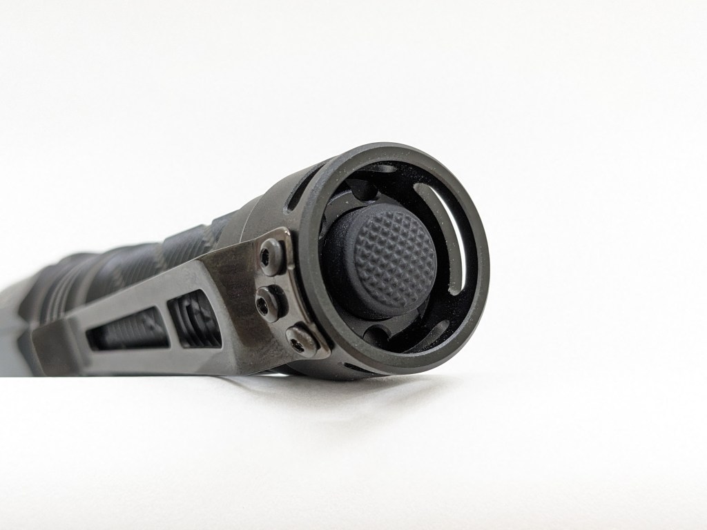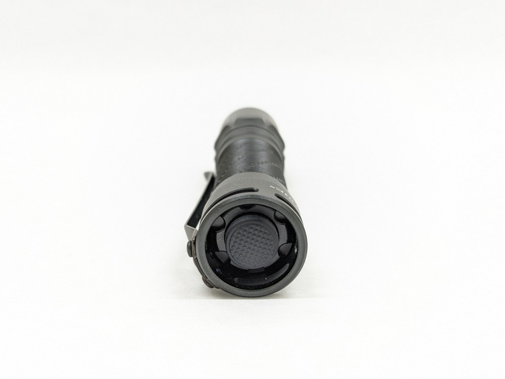 The switch is a forward clicky mechanical covered by a silicone boot. Being a forward clicky allows you to half-press it for momentary activation and fully click it for constant on, but you can’t change modes without turning it off and back on. I prefer forward clicked because I like momentary activation, and I like to tap-tap to the mode I want before fully clicking the light on.