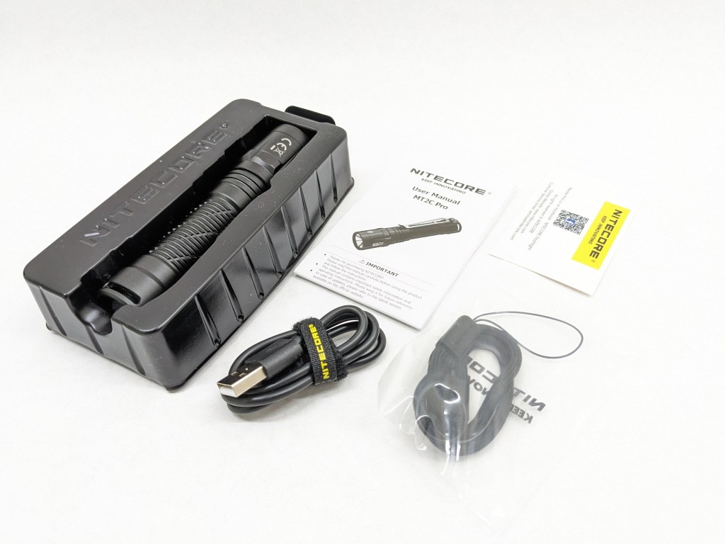 I like Nitecore’s boxes. The black and yellow theme is a nice departure from the typical Apply-style white boxes many products come in these days. They don’t seem expensive to make either, so I feel like more of the customer’s money goes into the flashlight instead of the unboxing experience. Inside is: