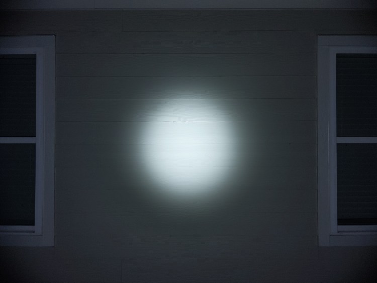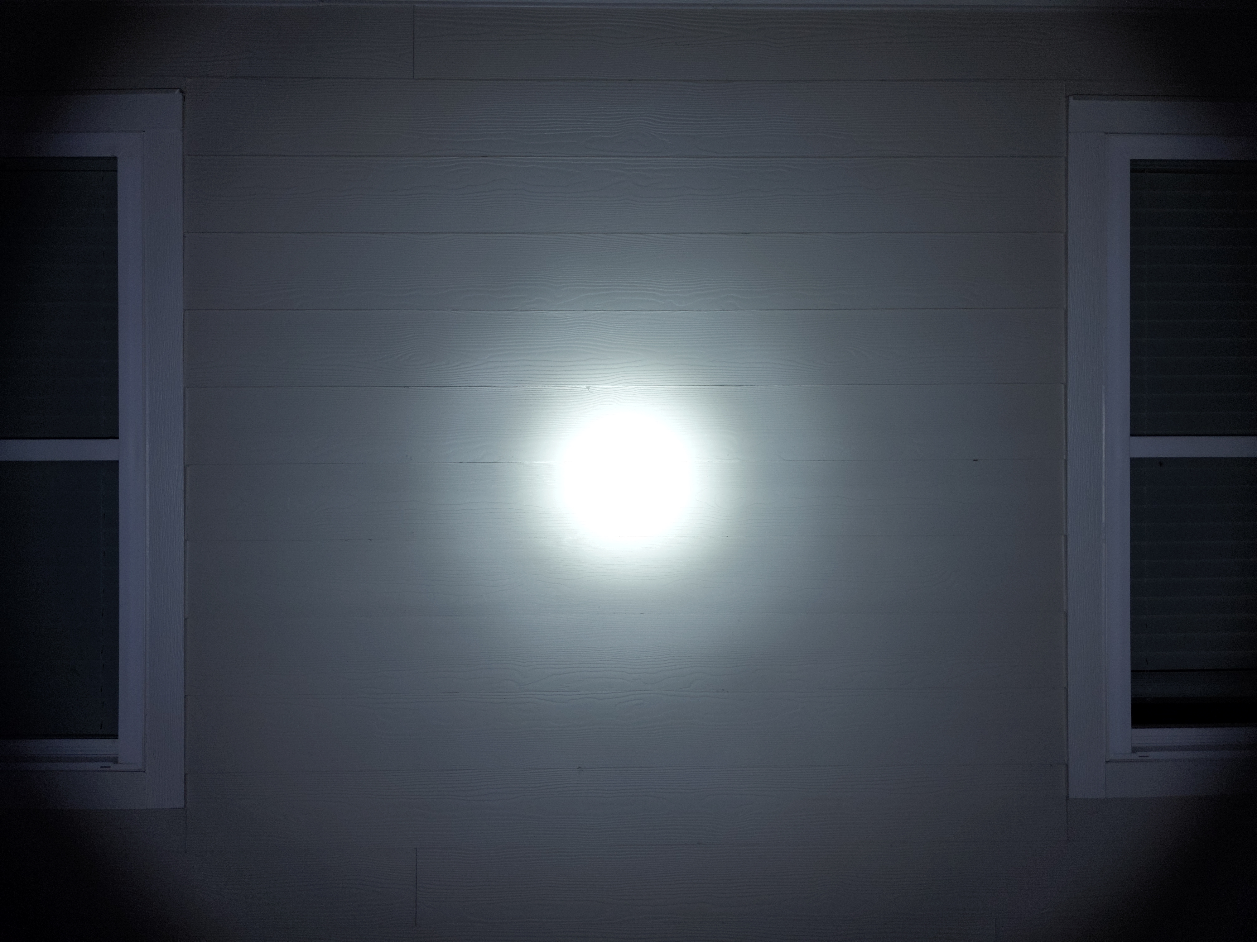 The beam has a good general-purpose profile, not too narrow, nor too wide (10 cd/lm). There are two flat spots in the spill from the rectangular bezel slightly blocking the beam.