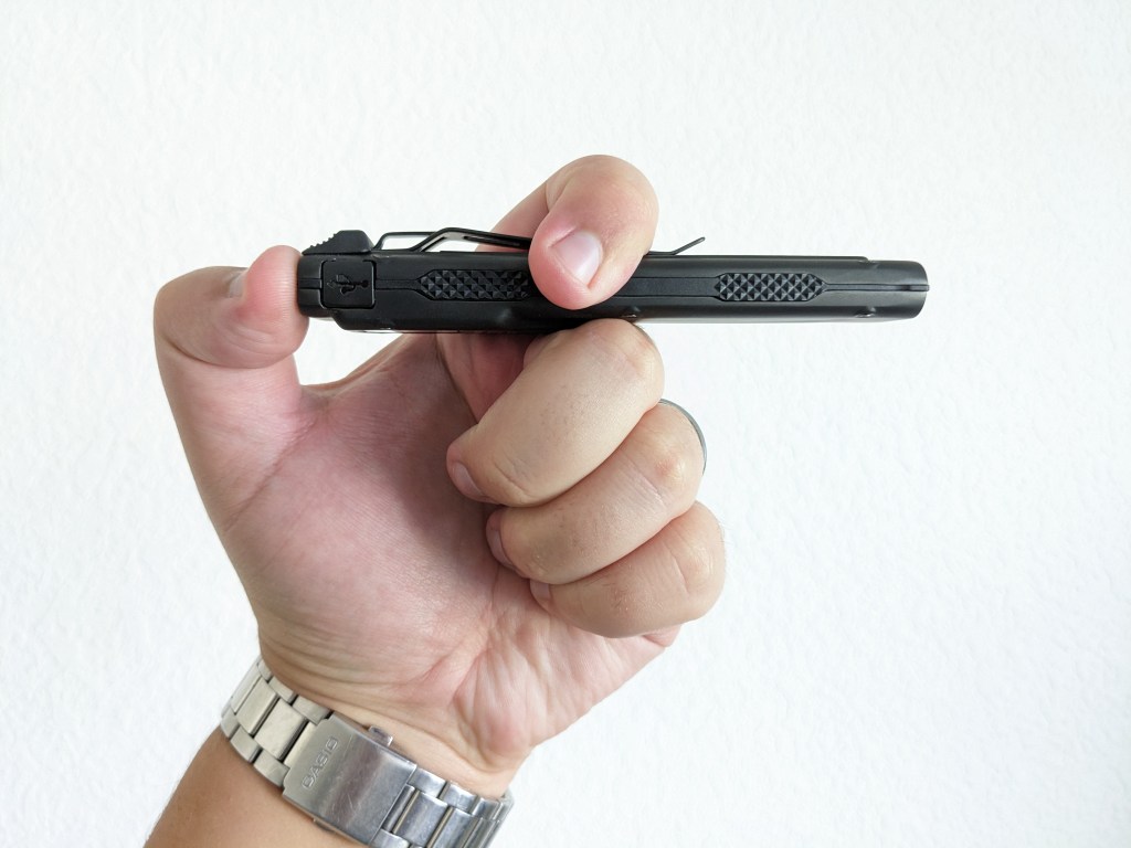 Charging is facilitated by a USB-C port on the side near the tail. It’s covered by a plastic and rubber port cover. Both A-to-C and C-to-C charging work fine. There’s no powerbank function. I wouldn’t expect one with such a small battery. The light works while charging except for Turbo and Strobe.