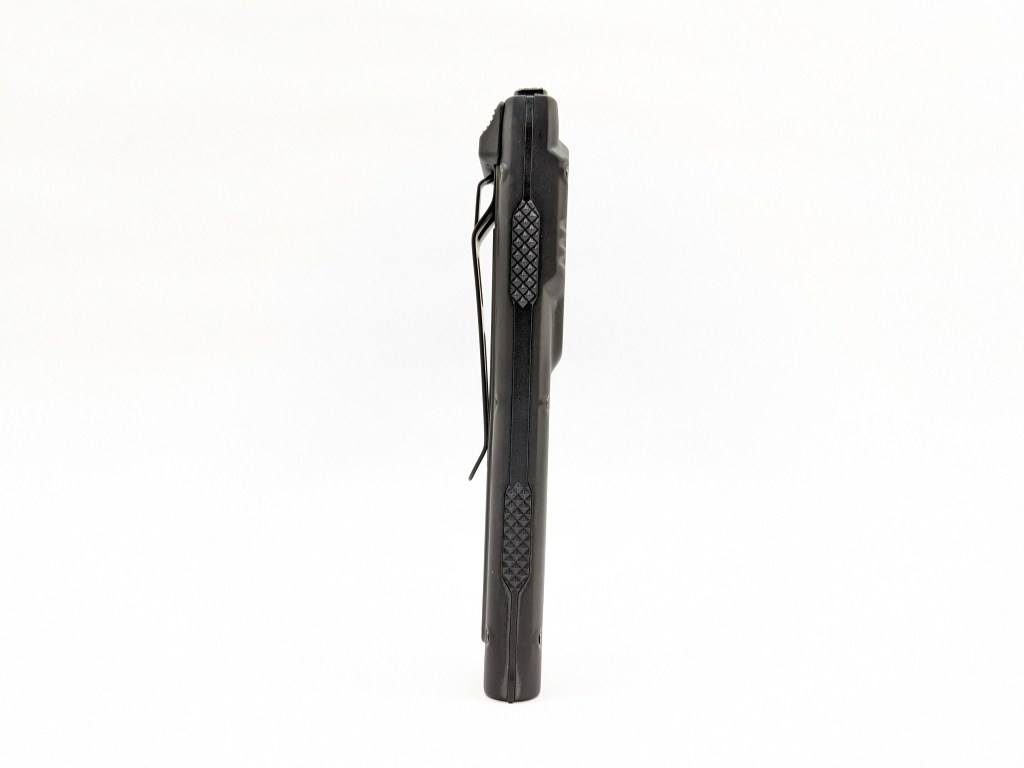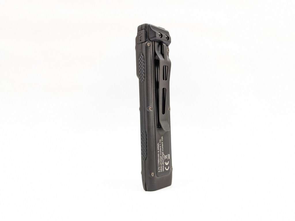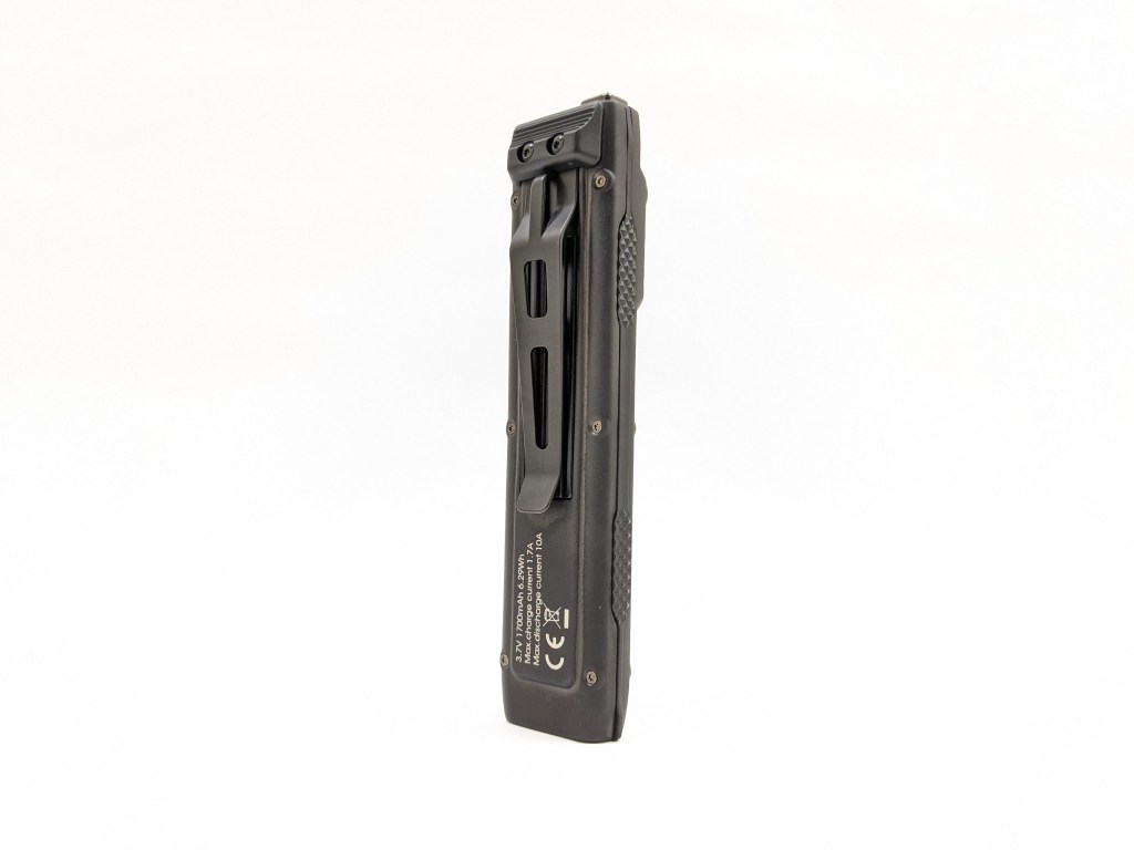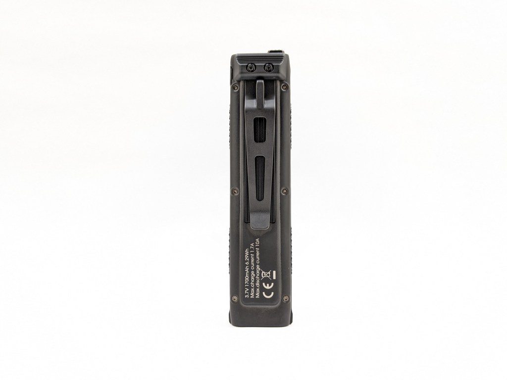 The clip works well enough but I don’t think it suits this light. It leaves a lot of the light sticking outside the pocket and there’s a big plastic piece above the clip for some reason that adds thickness. A simple deep carry clip would have been a better fit, I think. The clip screws don’t have any thread locker, so if you can find another clip that fits it’ll be easy to install. I included the screw spacing in the size and measurements section.