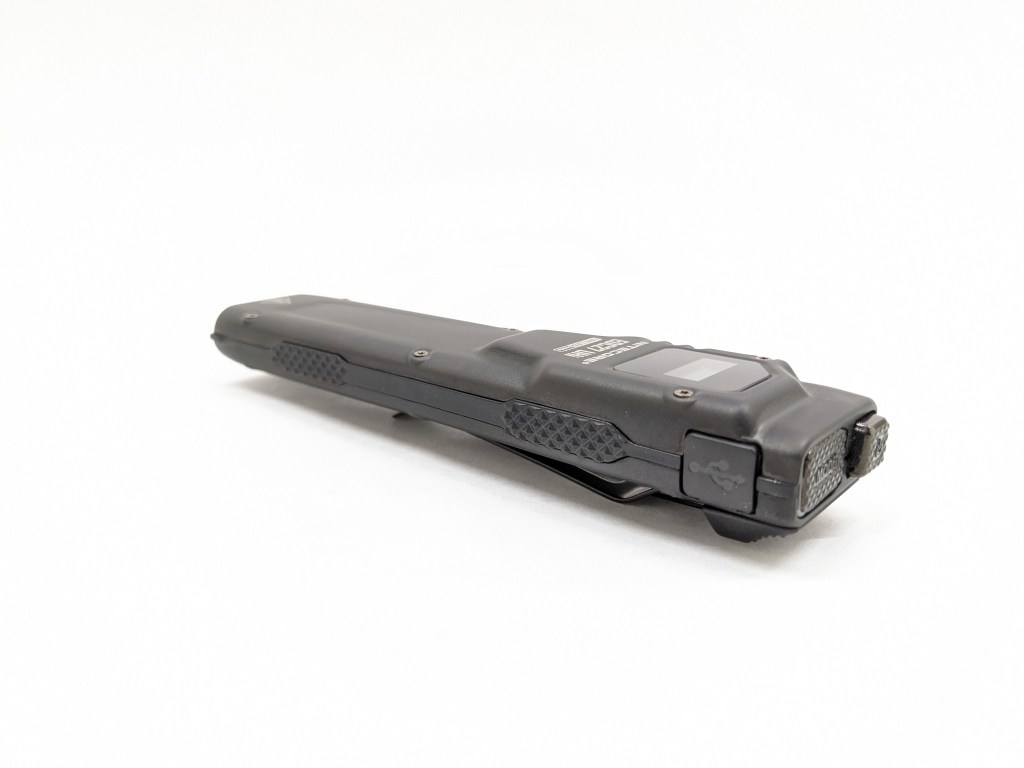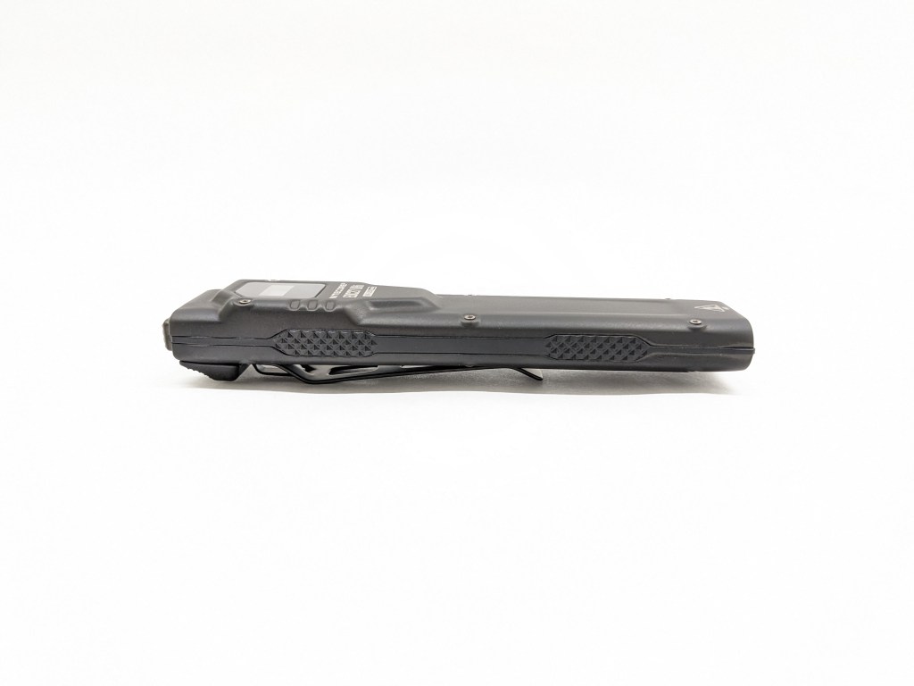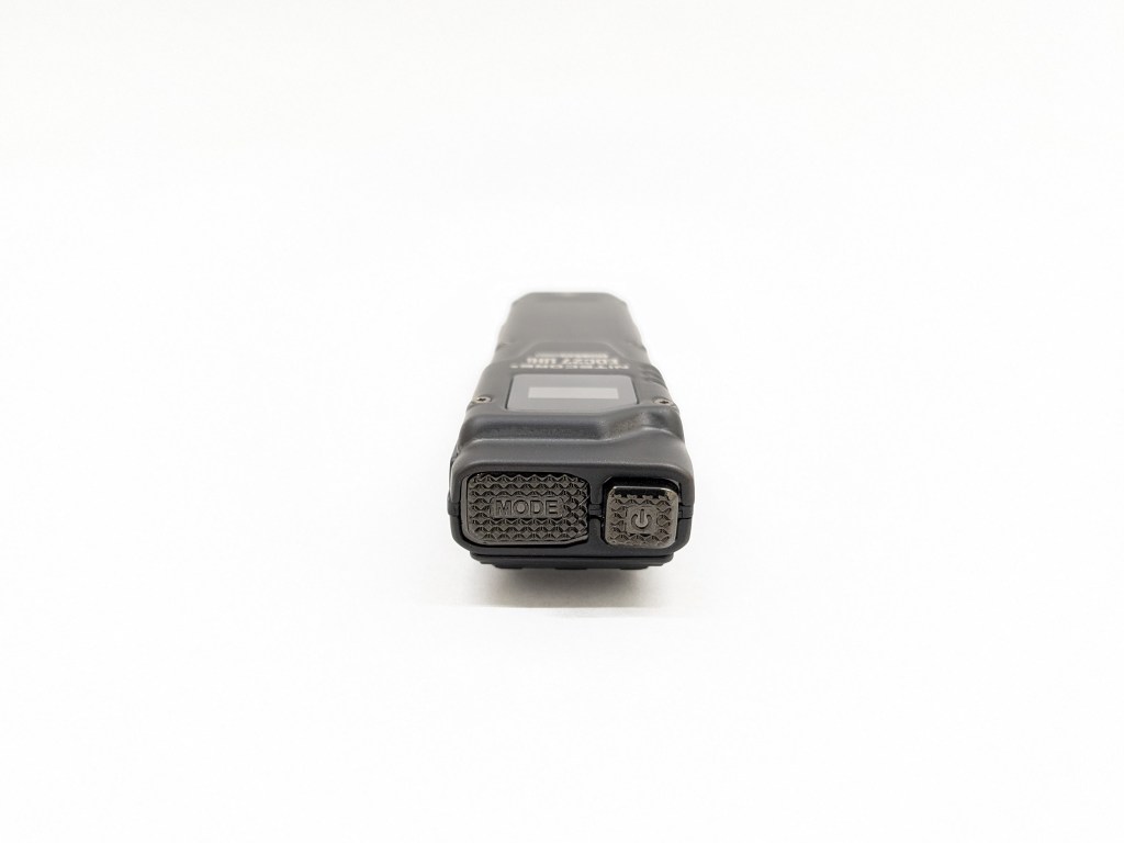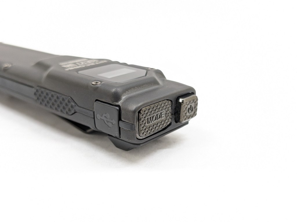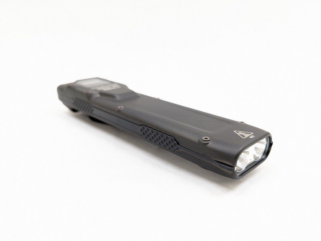 This light’s most unique feature is the small OLED display on its face. It displays battery voltage, brightness level, remaining runtime at that brightness level, and lockout status. The display turns on for a few seconds after you press a switch. You can turn it on to check battery status or adjust brightness while the light is off by half-pressing the main switch. Half-pressing again will cycle the brightness level so you can turn the light on in any mode you want.