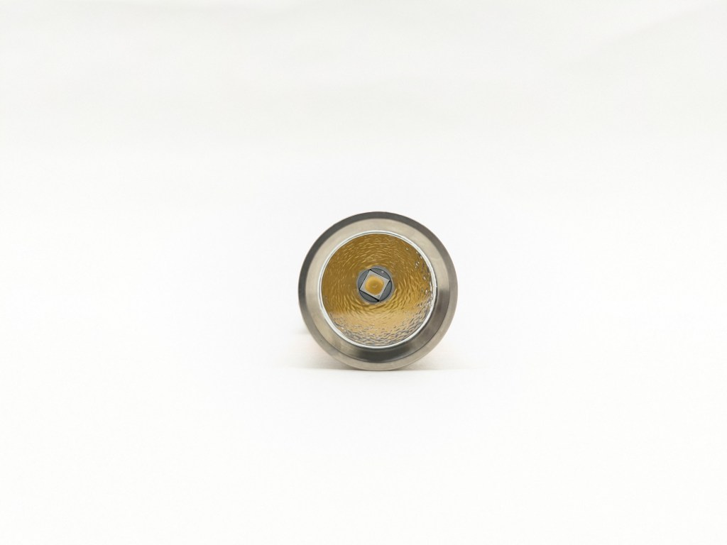 The beam is floody and soft from the domed LED and orange peel reflector. There aren’t any artifacts to speak of and it works well for EDC utility tasks.