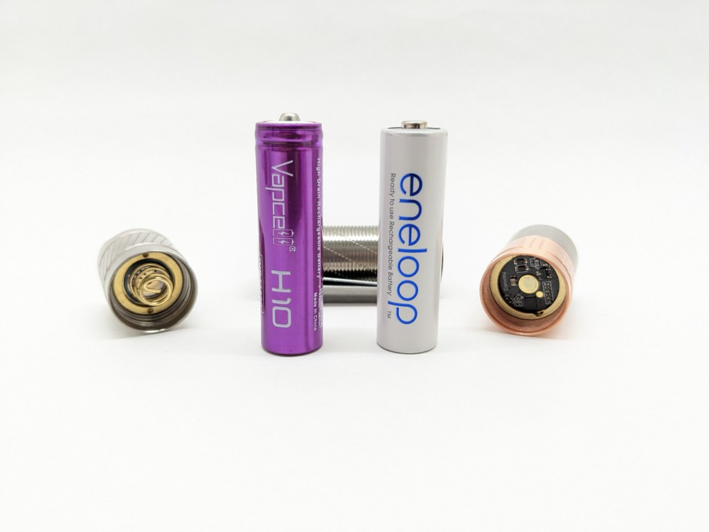 The driver is a dual-fuel so it supports a variety of batteries. On AAs, it boosts the battery’s voltage up to what the LED needs. On 14500 cells, I’m not sure what circuitry is involved. The product page says it’s FET, but the regulation performance looks more like Linear to me. It’s cool that it takes both battery types, but there are some downsides to be aware of that I covered in the User Interface section.