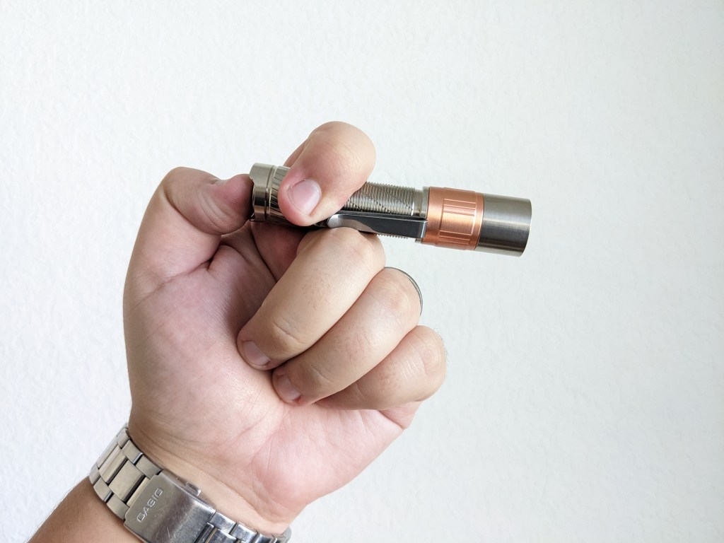 I love the aesthetics. I like the brightness, UI, and battery support. The UI and build quality are fine. I strongly dislike the pocket clip. Ultimately I think this is a great value for money. Most of the competition is either more expensive or not made of Titanium/Copper. If you want a high-class EDC light on a budget and don’t plan to use the clip, this is a fantastic choice.