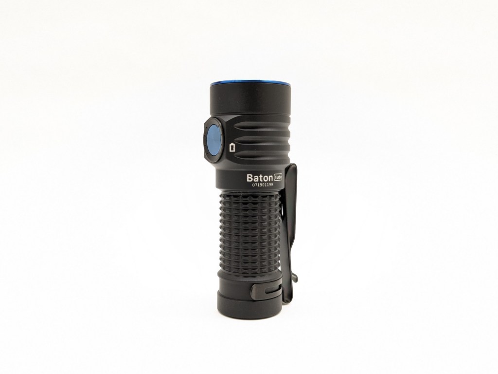 Baton Turbo builds on the existing Baton 4 aesthetic with a larger head, some cooling fins, and different pocket clip mounting. I think it looks smart, and I’m glad the clip is black instead of blue. I wish the bezel and button were black too.