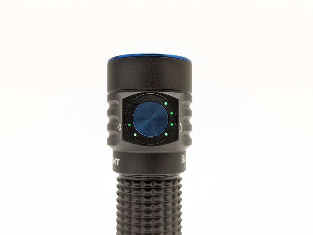 The battery indicator is perfect. It’s four LEDs right next to the button that glow when you turn the light on/off. They display remaining battery in 25% increments, plus the last one will turn red when the battery is critically low. This style of battery indicator is intuitive and glanceable. I like it so much more than a blinky voltage readout.