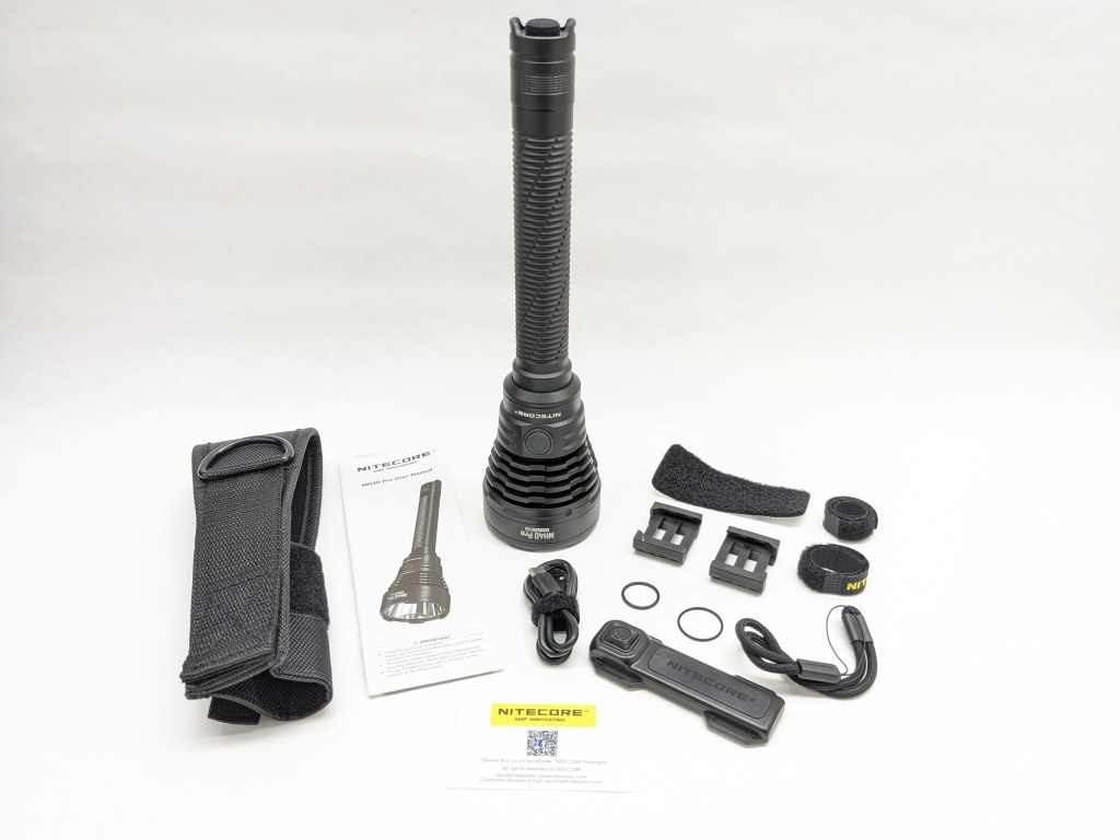 That remote is pretty cool and is designed to be mounted to a rifle with the light. Most remote switches for rifle lights have a cable connecting them to the tailcap of the light, but this system is wireless and that’s super convenient. Nitecore includes some mounting options for the remote in the box (adhesive pad, Velcro straps, and picatinny mounts). This is an awfully big light to be mounting to a rifle, but I’m excited to see what other Nitecore models come with this remote in the future.