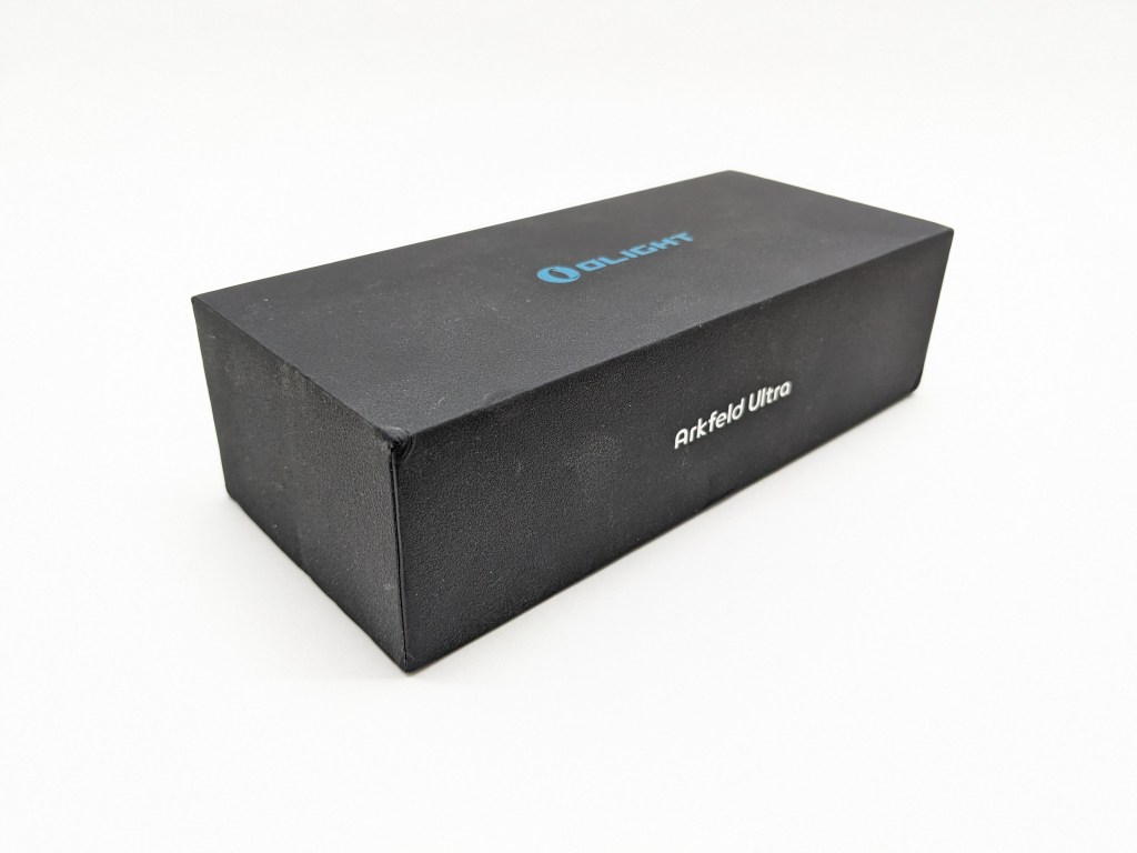 Arkfeld Ultra comes in a very nice, thick box. It’s got a matte black soft-touch coating on the outside and the top slides off to open it. Inside is: