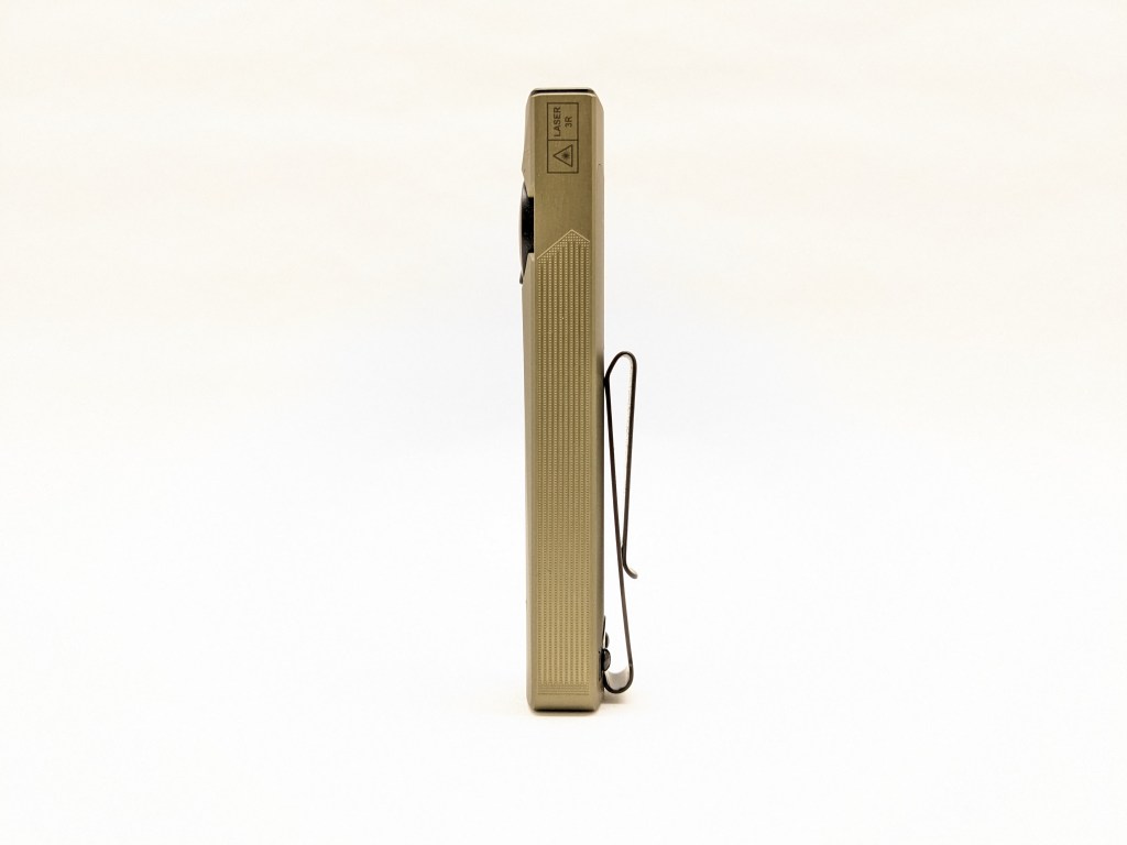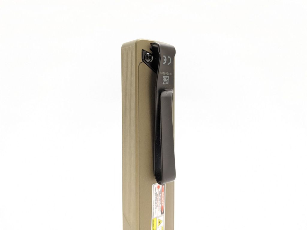 The clip is good overall, earning it a passing score. The two (related) issues are that it’s bidirectional and you can’t take the clip off. Arkfeld Ultra may be too heavy to reasonably clip to a hat, so it doesn’t really need a bidirectional clip. That clip is a snag hazard. If it gets bent out of shape, you can’t remove it easily to bend it back because Olight has put permanent threadlocker on the screws. I tried unscrewing one screw and it wouldn’t budge. Theoretically you can use a soldering iron to melt the threadlocker and then use a high-end bit to remove the screw without damaging it, but that shouldn’t be necessary.