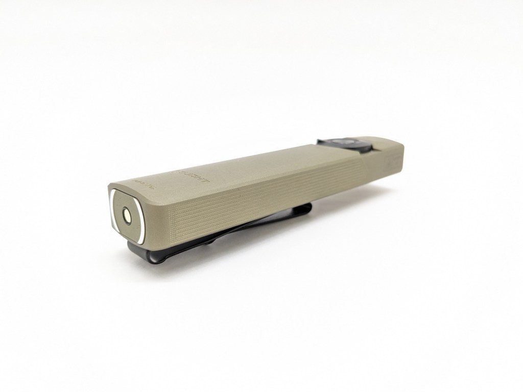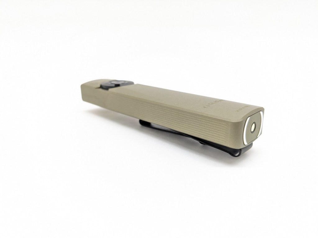 Arkfeld Ultra bears a strong resemblance to Arkfeld Pro, but it’s got sharp lines and facets where Arkfeld Pro is rounded. It’s also a unique color because of the special O-Aluminum (OAL) anodizing. Olight says that OAL is a new alloy they developed to be even better than 7075.