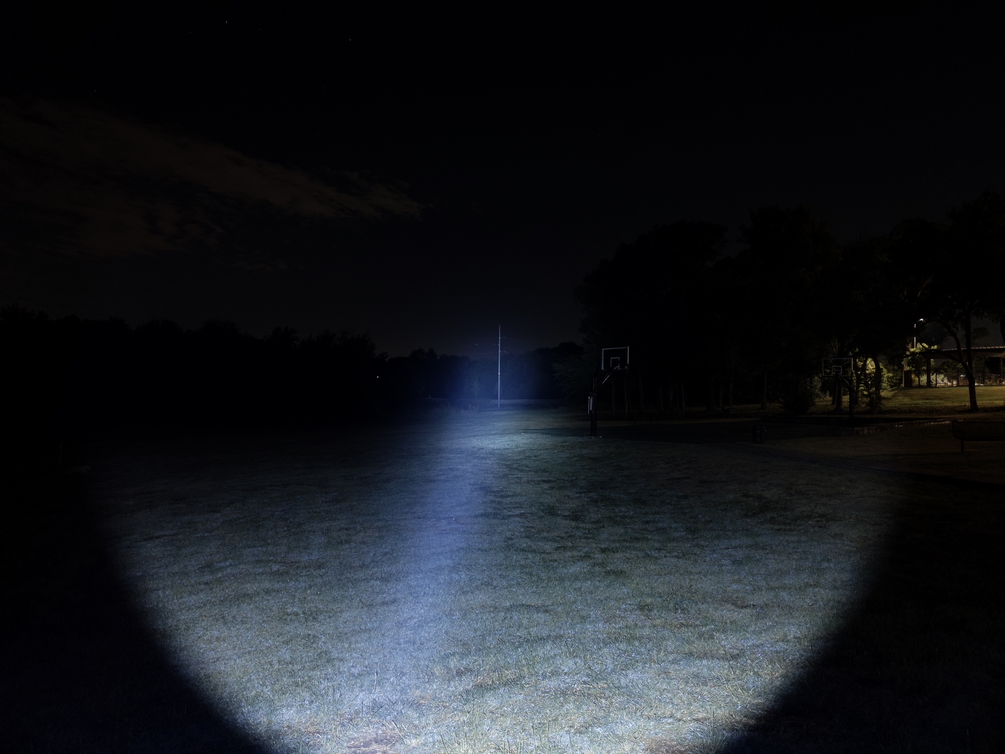 Disclaimer: All of my measurements are taken at turn-on. I don’t trust my lumen tube to give accurate measurements for super narrow beams like this, so all the lumen figures here are calculated assuming Turbo is as bright as advertised. A candela measurement was taken at 10 meters with an Opple Light Master III on the highest brightness, and other candela figures were calculated relative to that. CRI, CCT, & DUV data were taken for each mode from a few feet away at the center of the hotspot with the Opple Light Master and Waveform DUV Calculator. Runtime tests were performed with the Ceilingbounce app on my smartphone. These tests were performed with a fully charged included battery unless otherwise specified. I cannot measure moonlight directly, so moonlight readings are calculated based on the brightness relative to the next-lowest mode. None of this is professional equipment, so take these measurements with a grain of salt.