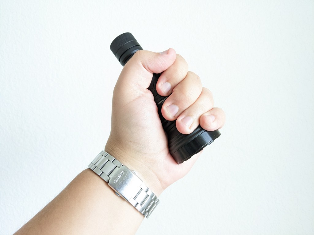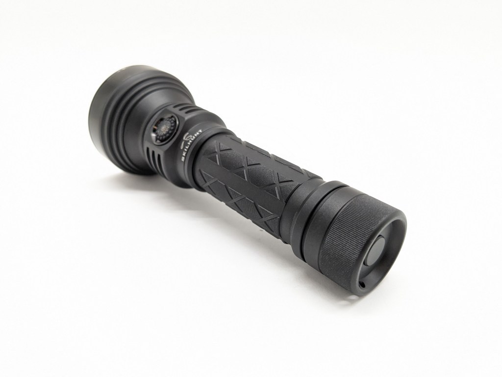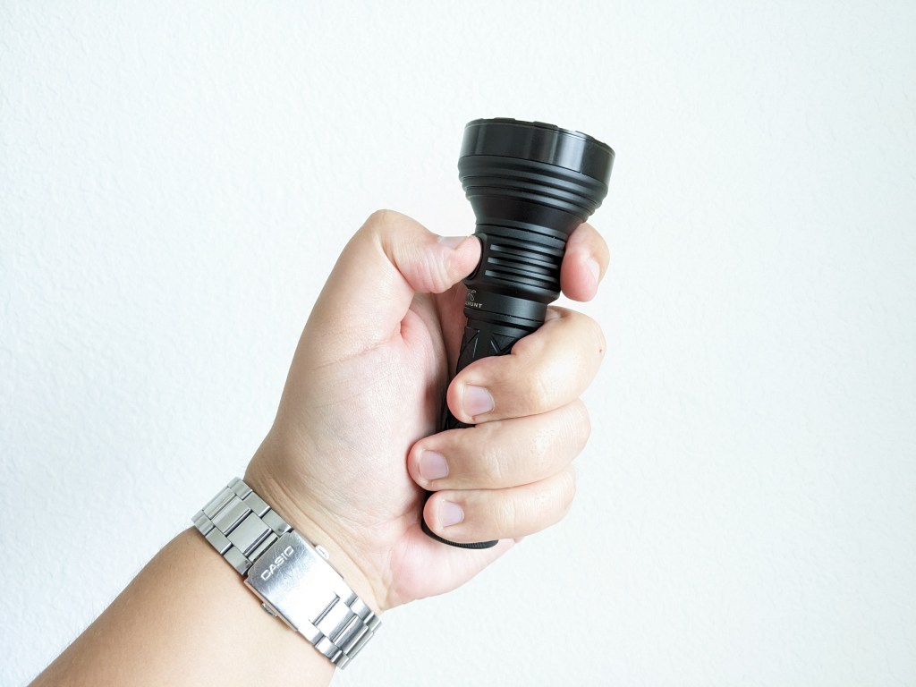 This is a good medium size thrower. It doesn’t have any one feature that sets it apart from the competition, but it does pretty much everything well. Plenty of brightness, plenty of throw, popular battery size, convenient charging, powerbank, good UI & switch, great build quality, great size and ergonomics. It’s a complete and well-polished package.