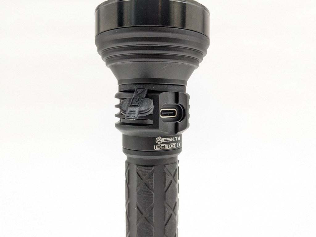 Charging is facilitated by a USB-C port on the side of the head, covered by a silicone port cover. I’m glad Skilhunt chose USB-C charging here instead of their proprietary magnetic system. Both A-to-C and C-to-C cables work fine. It’s fully functional while charging, except for T1 mode, even with the battery disconnected. There’s a powerbank function too, which I expect on lights with a 21700 battery or larger. Charging takes about 2.5 hours.