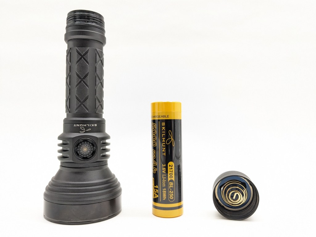 Driver: I couldn’t separate the head and body to access the driver. Skilhunt sometimes glues those components together. Skilhunt told me this is a Buck driver, and it has a spring on it for some battery flexibility.
