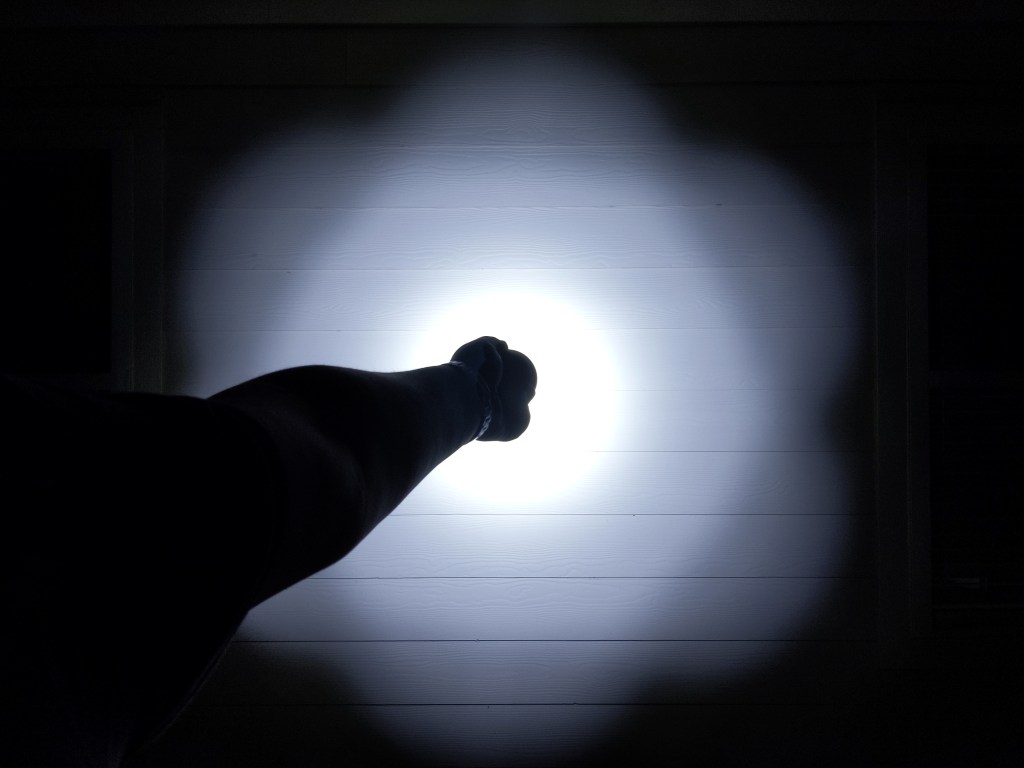 Disclaimer: All of my measurements are taken at turn-on. Lumen measurements were taken on a Texas Ace 3.5″ Lumen Tube. A candela measurement was taken at 10 meters with an Opple Light Master III on the highest brightness, and other candela figures were calculated relative to that. CRI, CCT, & DUV data were taken for each mode from a few feet away at the center of the hotspot with the Opple Light Master and Waveform DUV Calculator. Runtime tests were performed with the Ceilingbounce app on my smartphone. These tests were performed with a fully charged included battery unless otherwise specified. I cannot measure moonlight directly, so moonlight readings are calculated based on the brightness relative to the next-lowest mode. None of this is professional equipment, so take these measurements with a grain of salt.