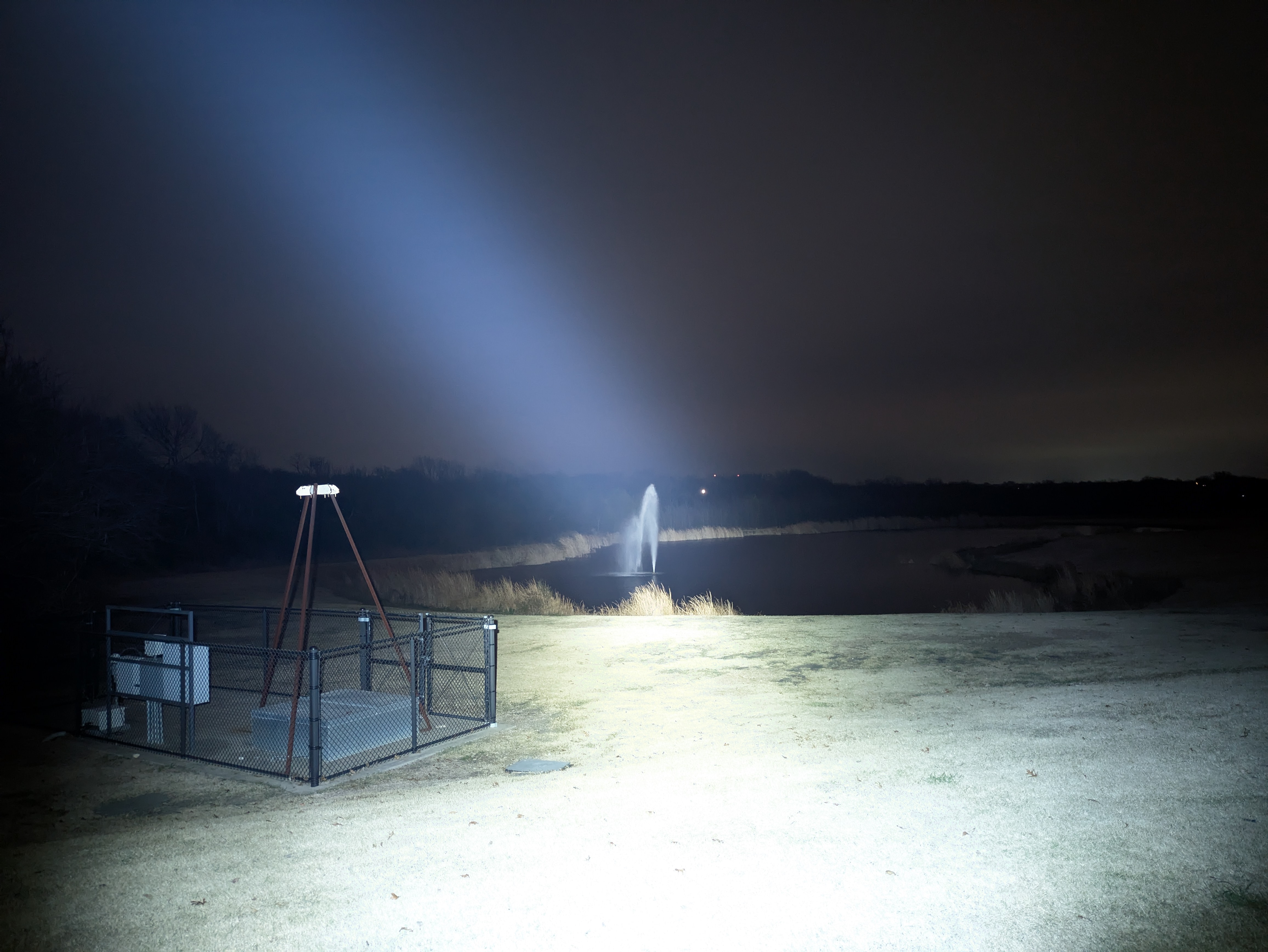 In the beamshots below, the fence is 16 meters away and the fountain is 86 meters away.