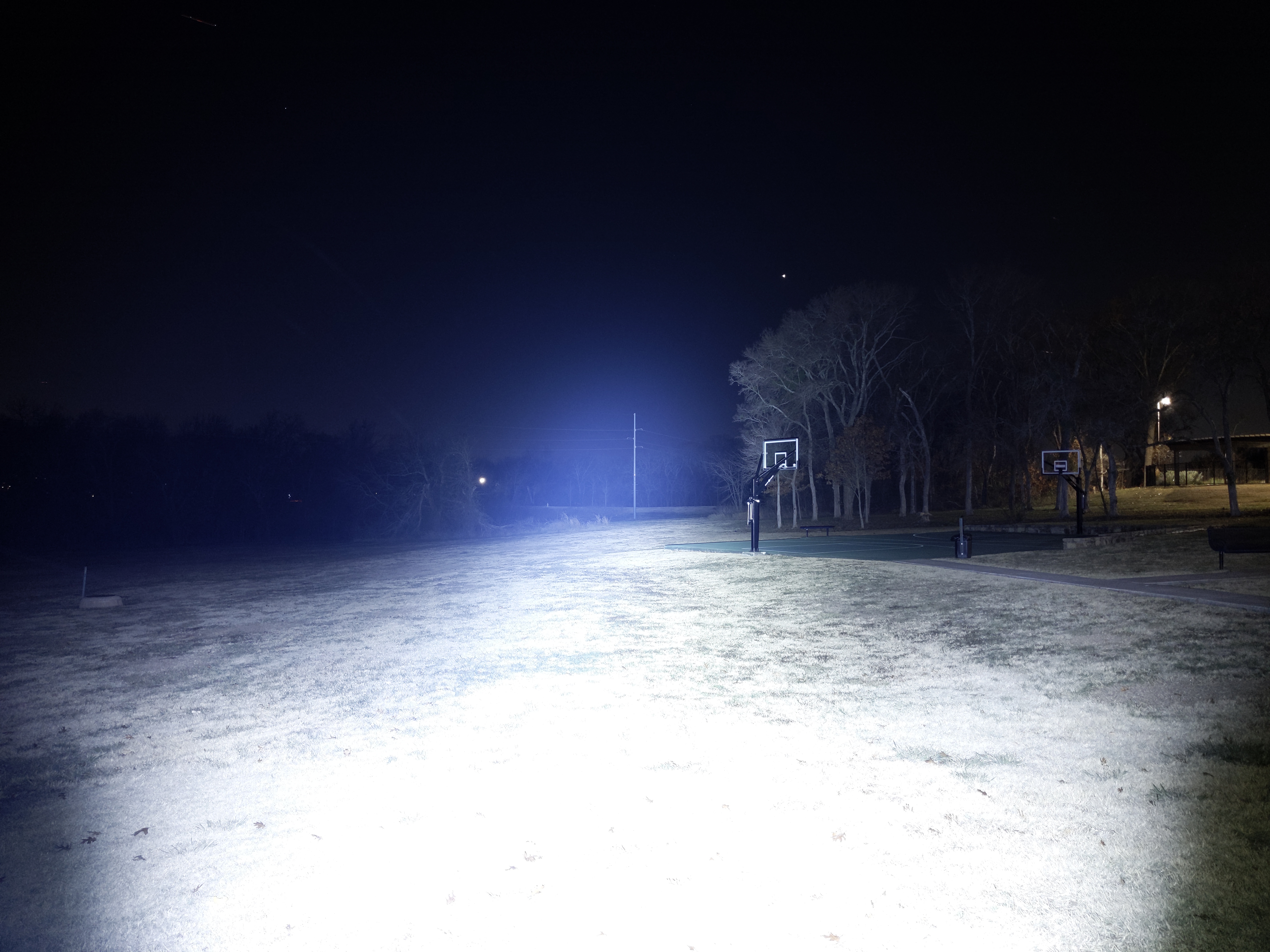 In the beamshots below, camera settings are fixed, the basketball goal to the right of the hotspot is 39M away, and the power pole in the center is 185M away.