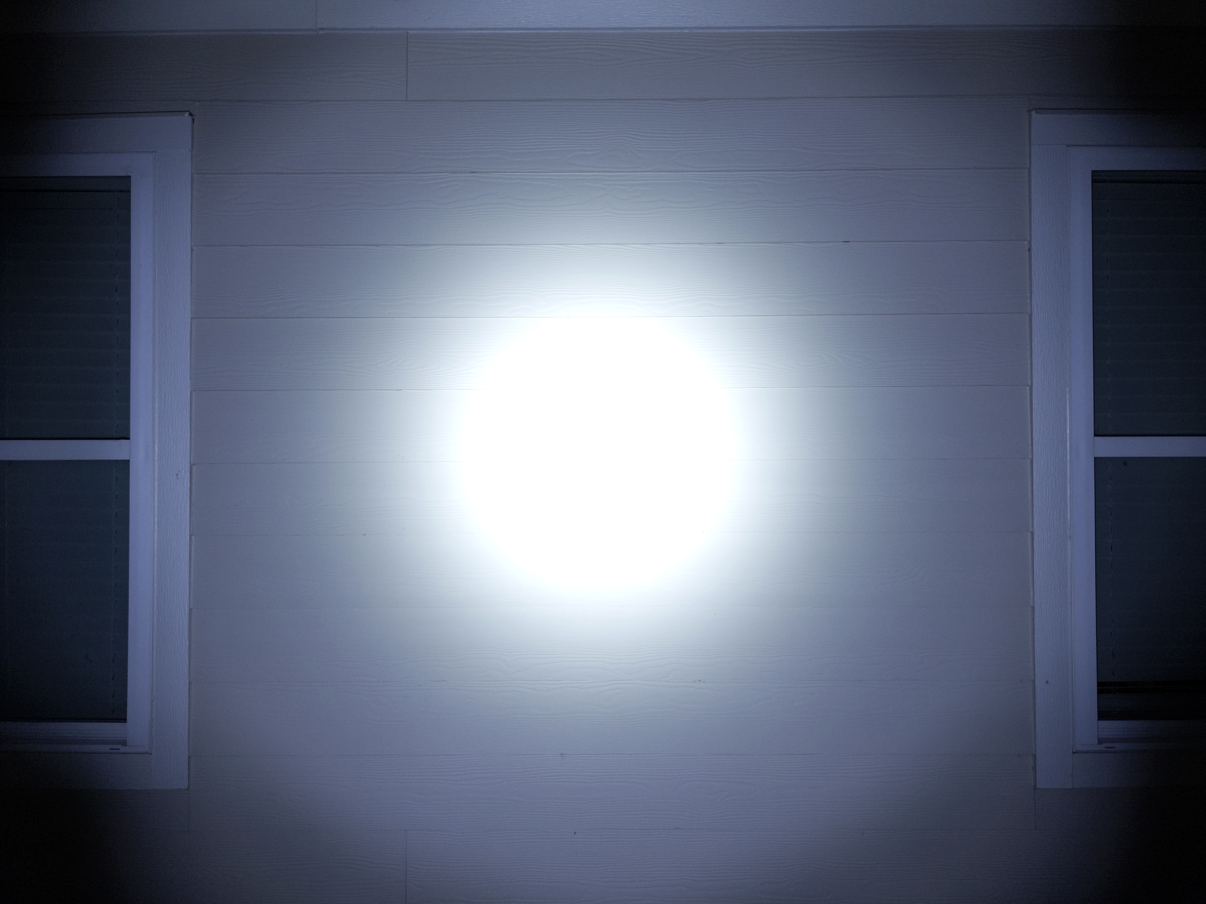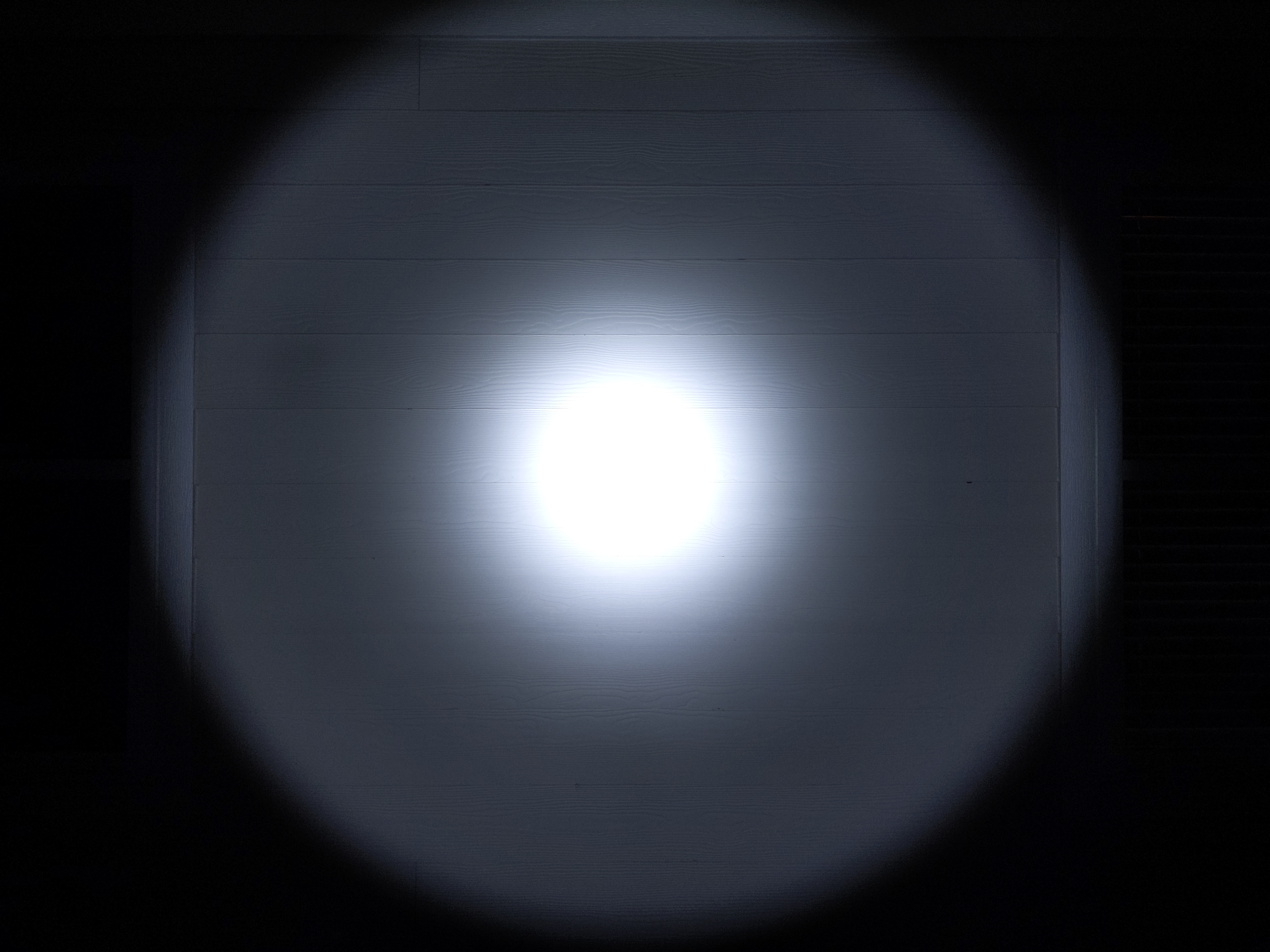 The beam is surprisingly balanced. I expected it to be a lot floodier. Choosing SFT40 LEDs will make it throwier. There are six flower petals surrounding the spill, resulting from the compound reflector with overlapping cones.
