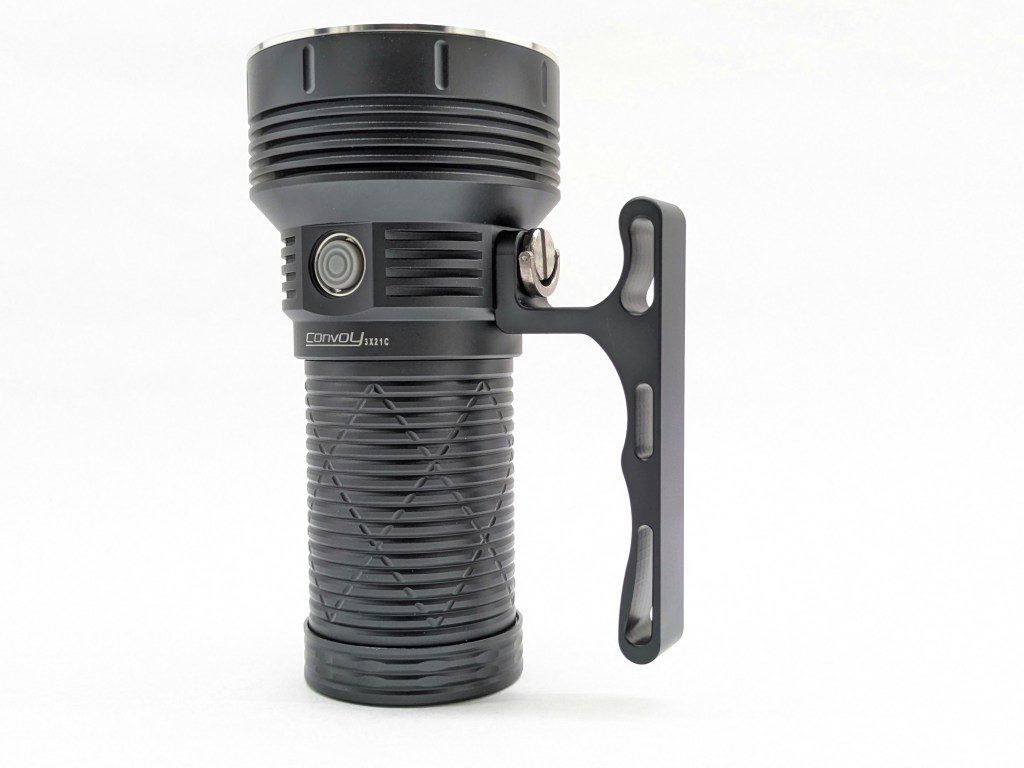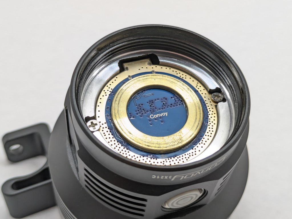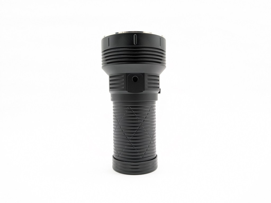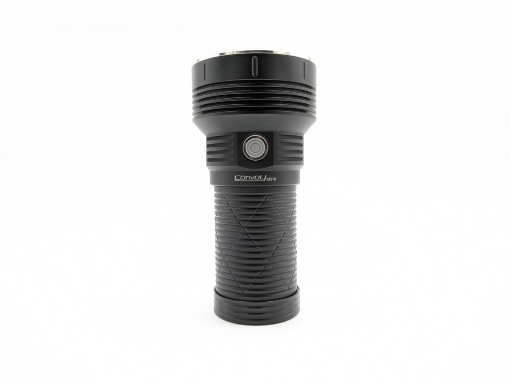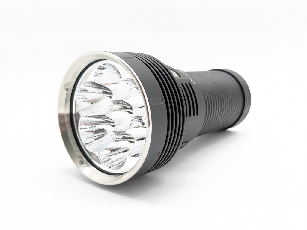 The official specs on the product page state up to 15,000 lumens, but Convoy tends to advertise theoretical LED output not the actual out-the-front measurement. The 12,000lm I measured is about right if it’s theoretically making 15,000 at the LEDs.